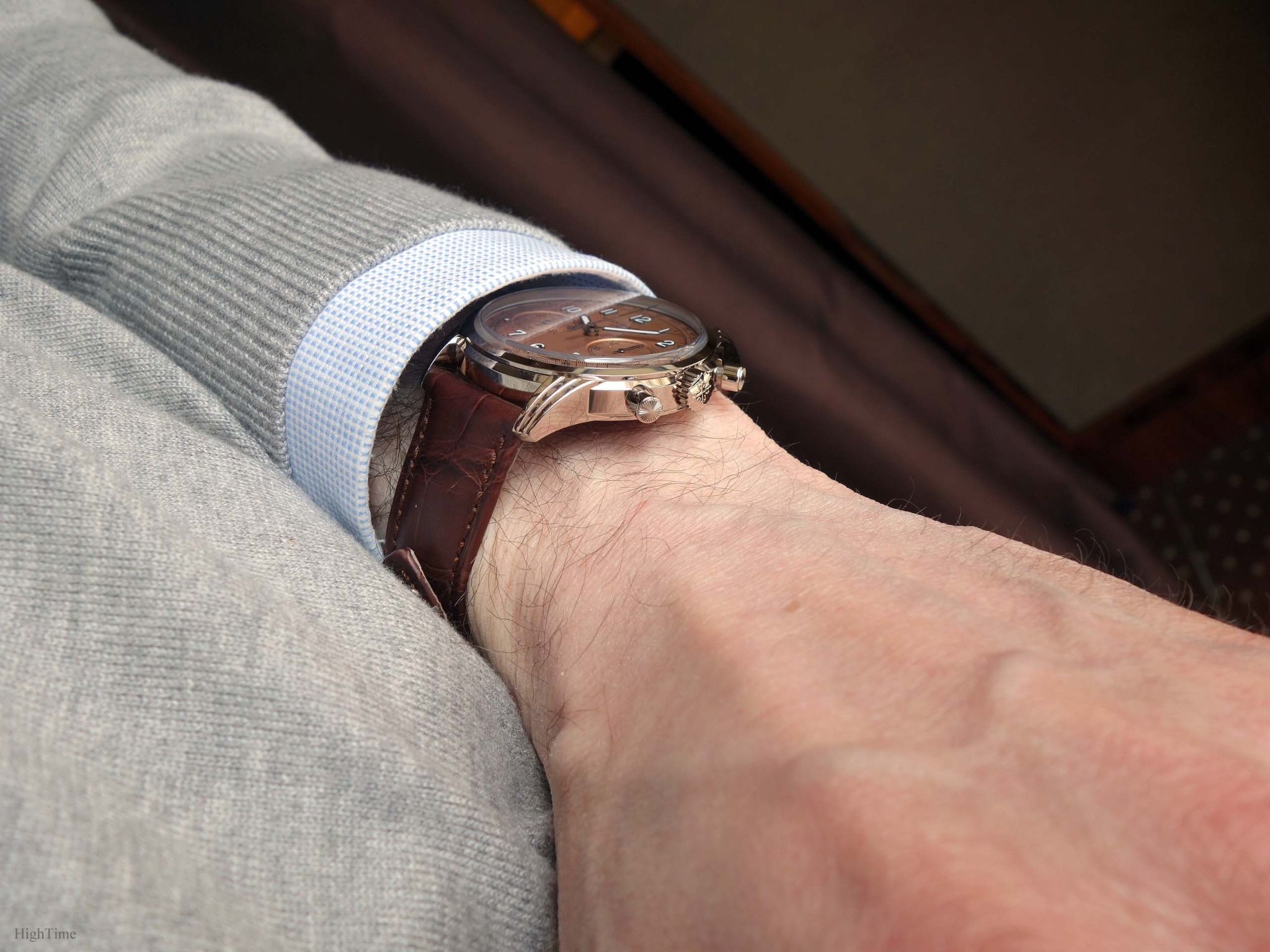 The 5172 is typically presented in a precious metal case, housing the in-house caliber CH 29-535 PS. This manual-wind movement is visible through a sapphire crystal case back, showcasing its traditional architecture and finishing. The movement provides a substantial power reserve, ensuring reliable timekeeping and chronograph operation. The front crystal is also sapphire, protecting a dial designed for legibility with applied numerals and a pulsometer scale.