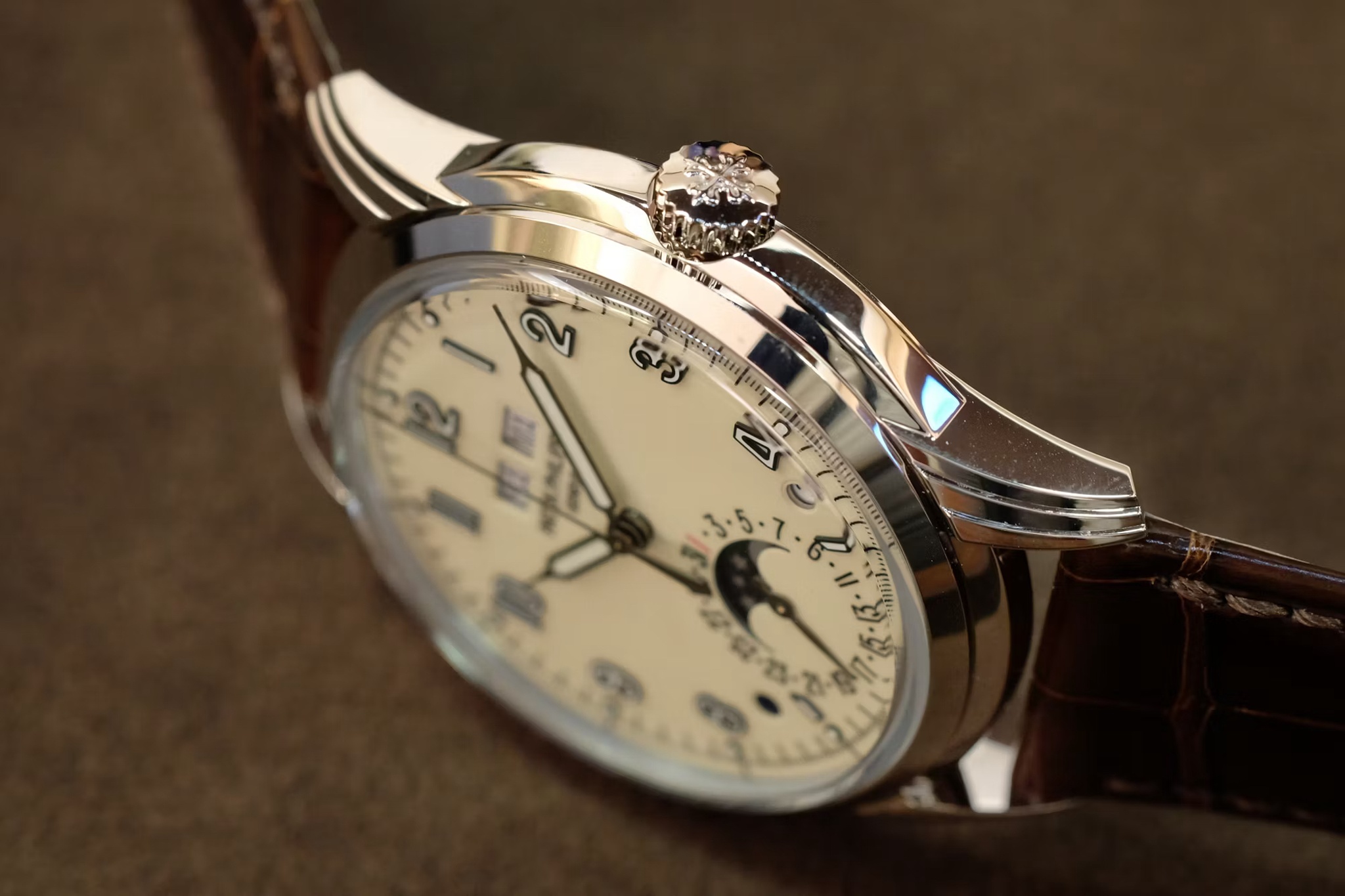 This reference appeals to collectors seeking a sophisticated perpetual calendar with a distinct vintage character, yet executed with modern reliability. Its white gold construction offers a subtle alternative to more common yellow or rose gold perpetual calendars. The 5320G fits within Patek Philippe's grand complications lineup, offering a blend of technical mastery and design heritage that resonates with enthusiasts of classic horology.