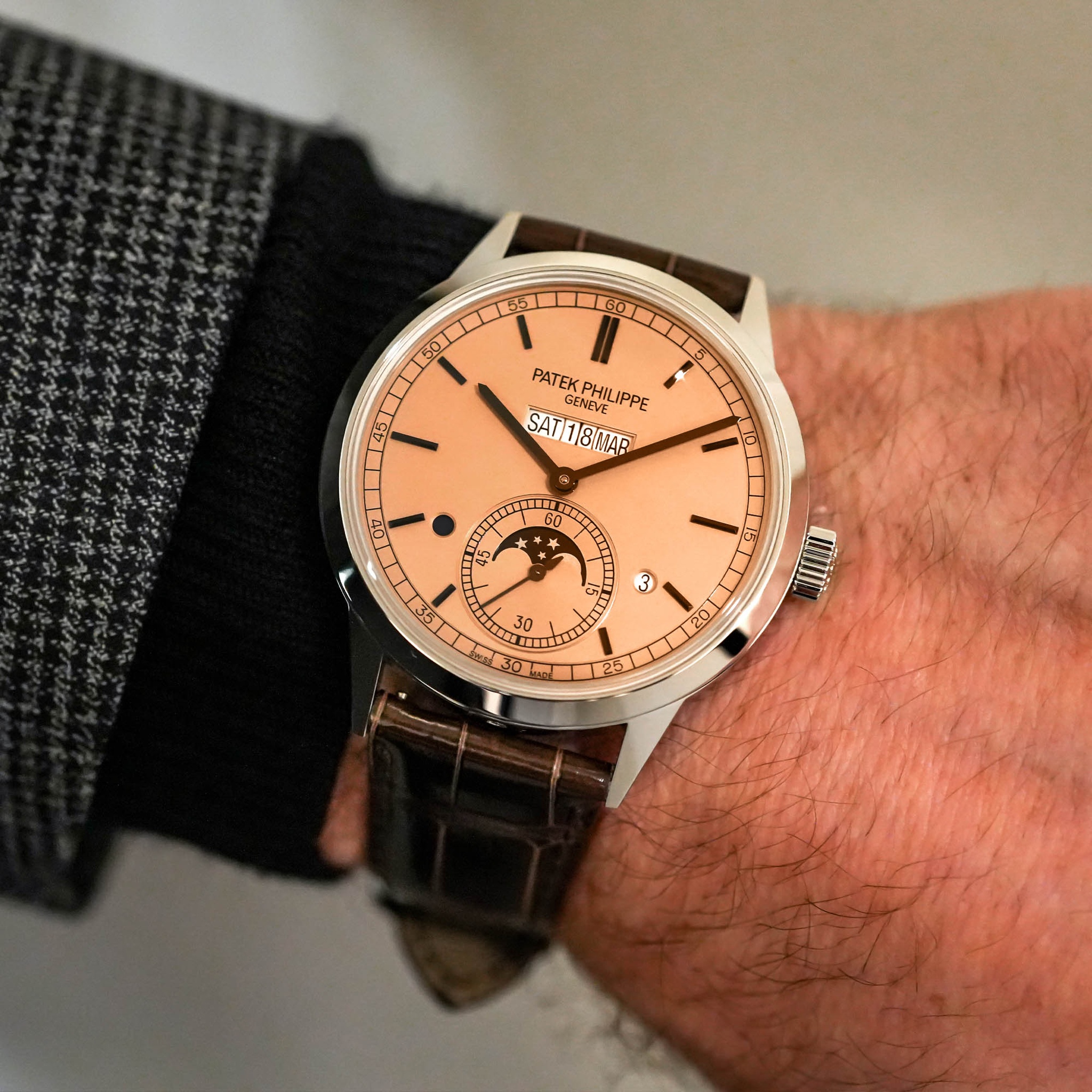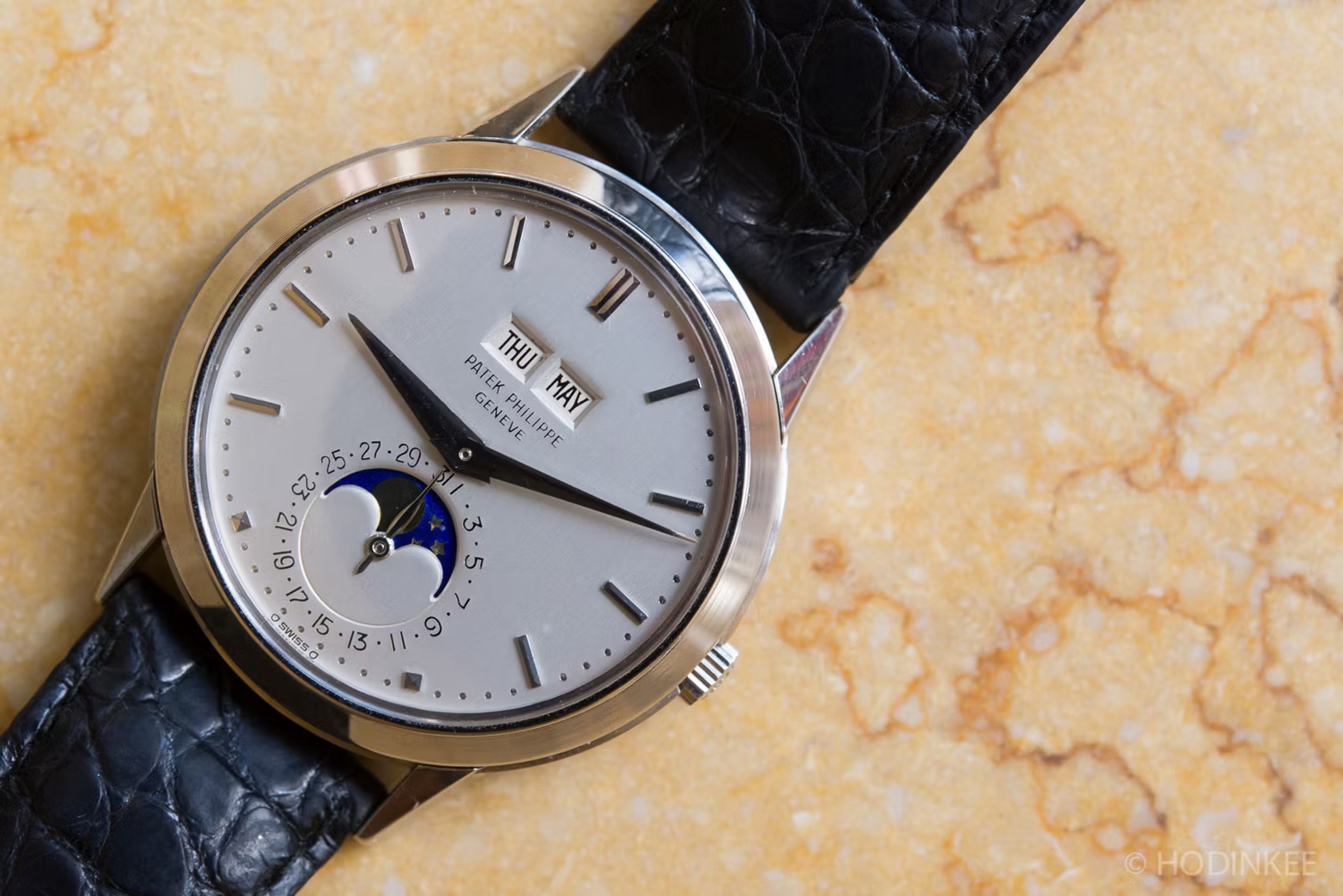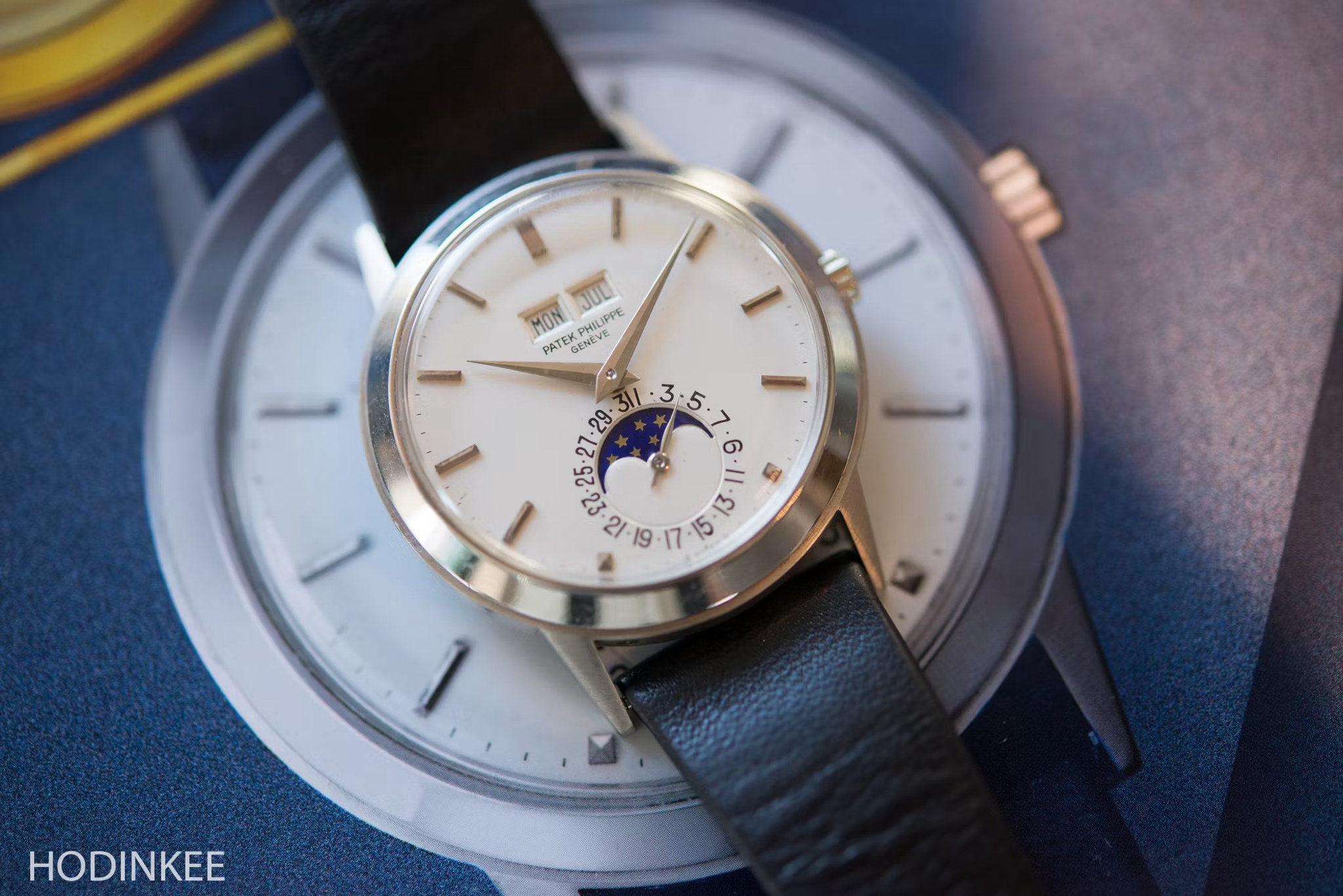 Only known ref. 3448 with Leap Year Indicator, a specificity of the ref. 3450. White gold. (credit: hodinkee)