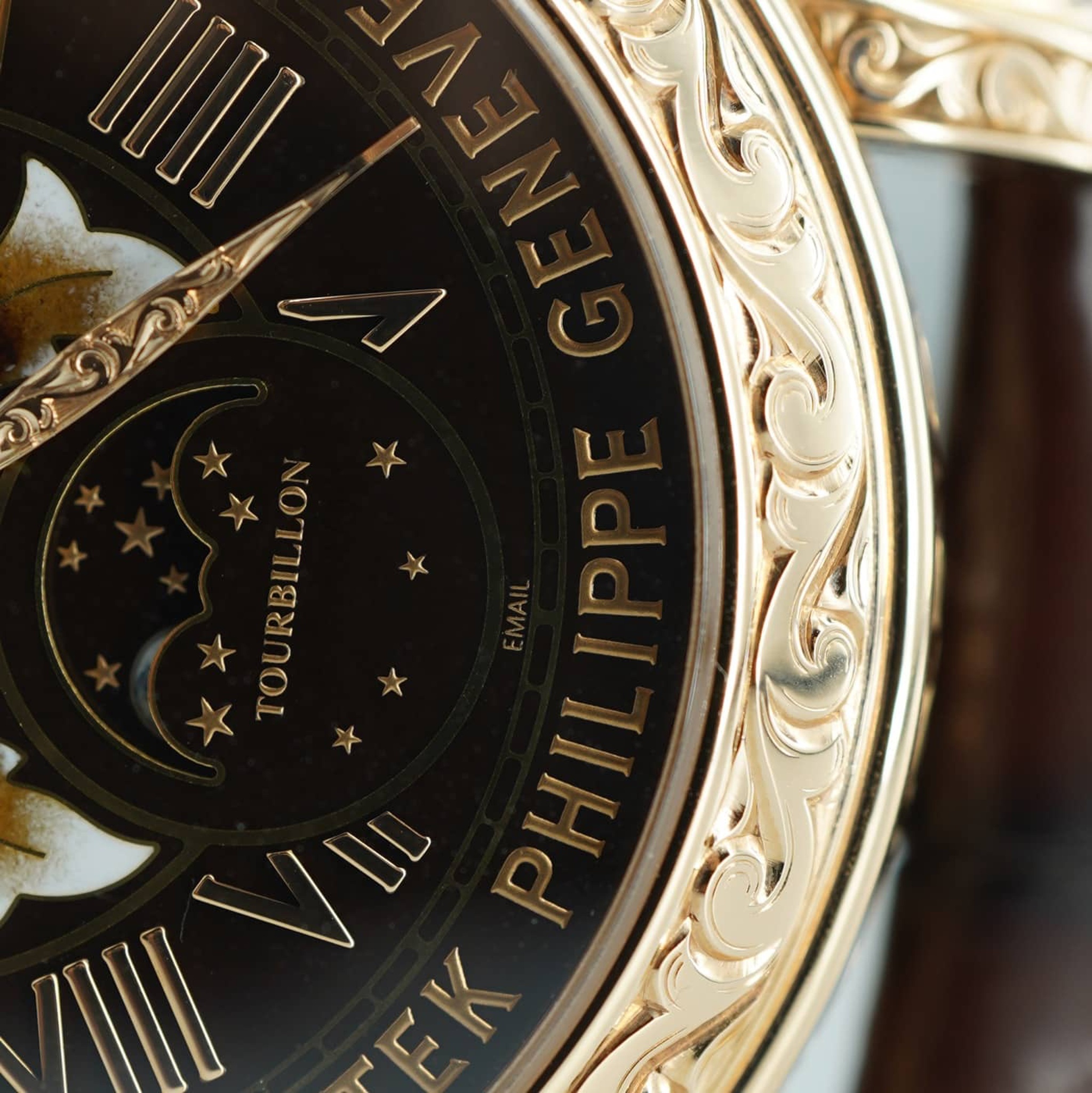 - The Sky Moon Tourbillon is a double-faced wristwatch with 12 complications: Minute repeater with “cathedral” gongs. Tourbillon. Front side: Perpetual calendar with retrograde date hand. Day, month, leap year in apertures. Hours and minutes of mean solar time. Moon phases. Reverse side: sidereal time, sky chart, phases and orbit of the moon.