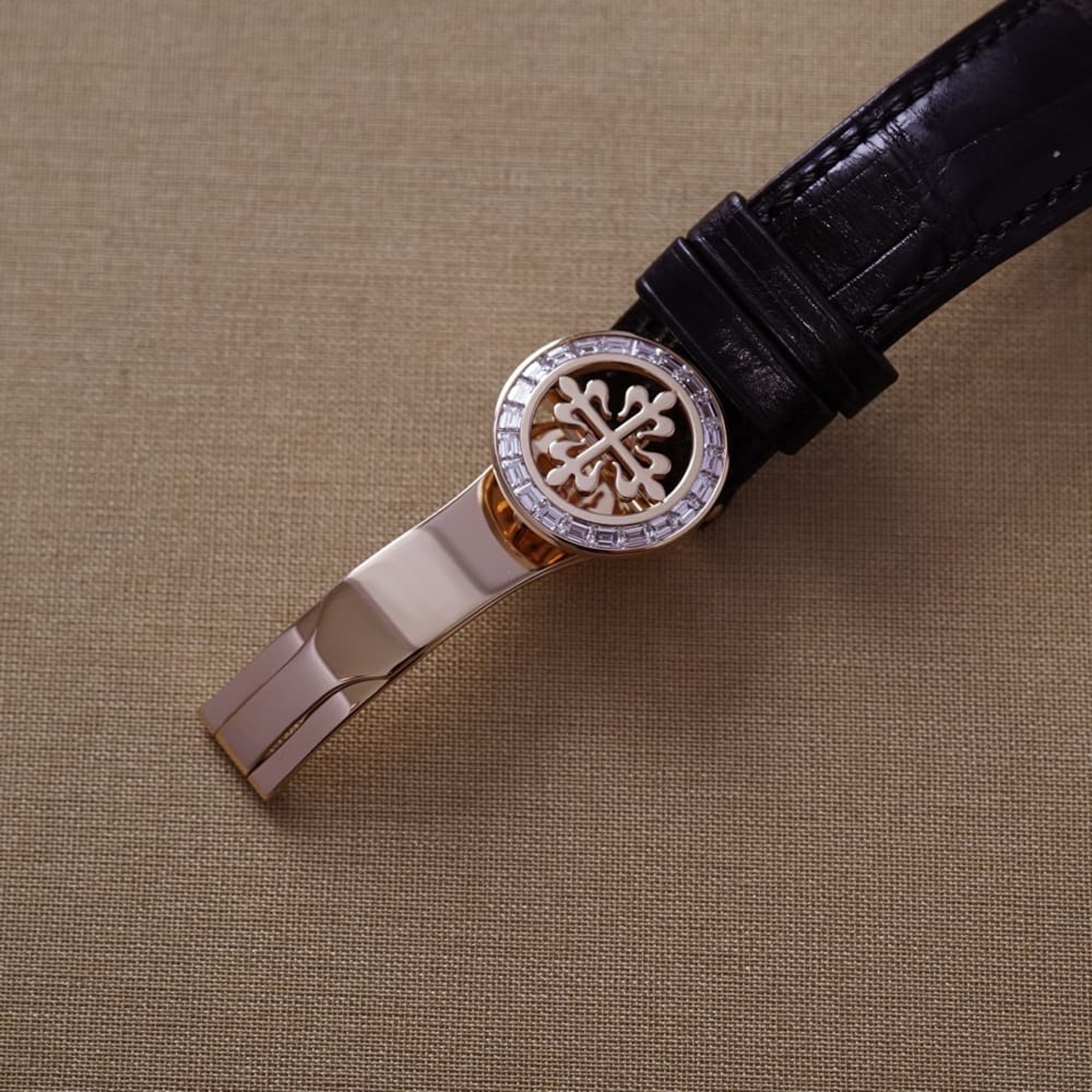 Ref. 5002R-014 (unique bespoke version with black dial adorned with diamond indexes set in rose gold chatons, circa 2012)