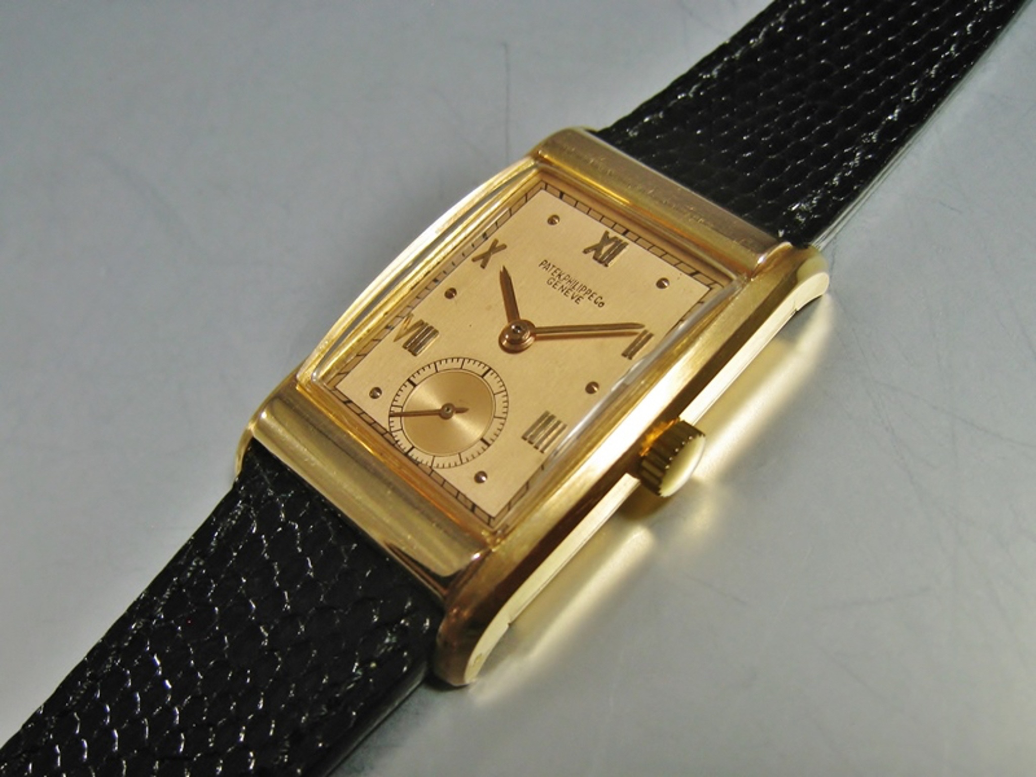 The Patek Philippe Reference 1585 is a notable example of the brand's mid-20th century production, distinguished by its rectangular case design. This reference is part of a series that showcases Patek Philippe's expertise in crafting dress watches with distinctive forms, moving beyond the more common round cases. It represents a period where design innovation in case architecture was a significant aspect of high horology, appealing to collectors who appreciate historical design aesthetics.