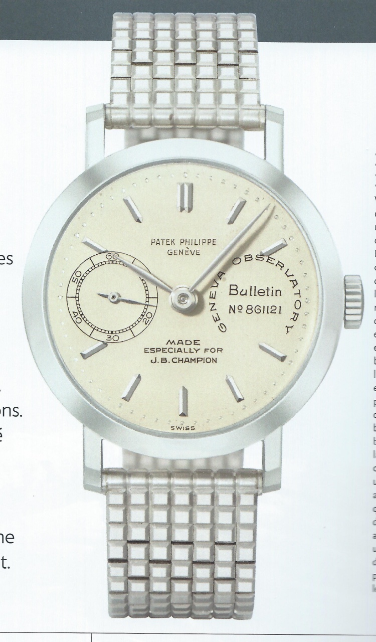 There is a special 2458 reference in platinum fitted with an observatory movement that belonged to JB Champion and that achieved a record price of USD 3,992,858 at Christie’s on 12 November 2012. This is to date, the most expensive time only watch.