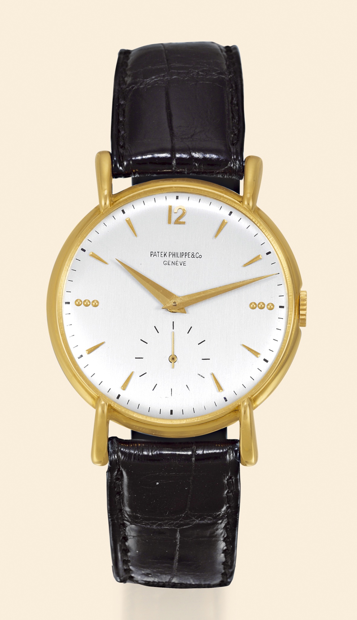 This reference typically features a case crafted from precious metals, housing a manual-winding movement. The case diameter, substantial for its time, contributes to its distinctive appearance. The crystal is commonly acrylic, consistent with watches of this period, protecting a dial that often presents in classic silvered or champagne tones. The movement, a testament to Patek Philippe's horological standards, provides reliable timekeeping.