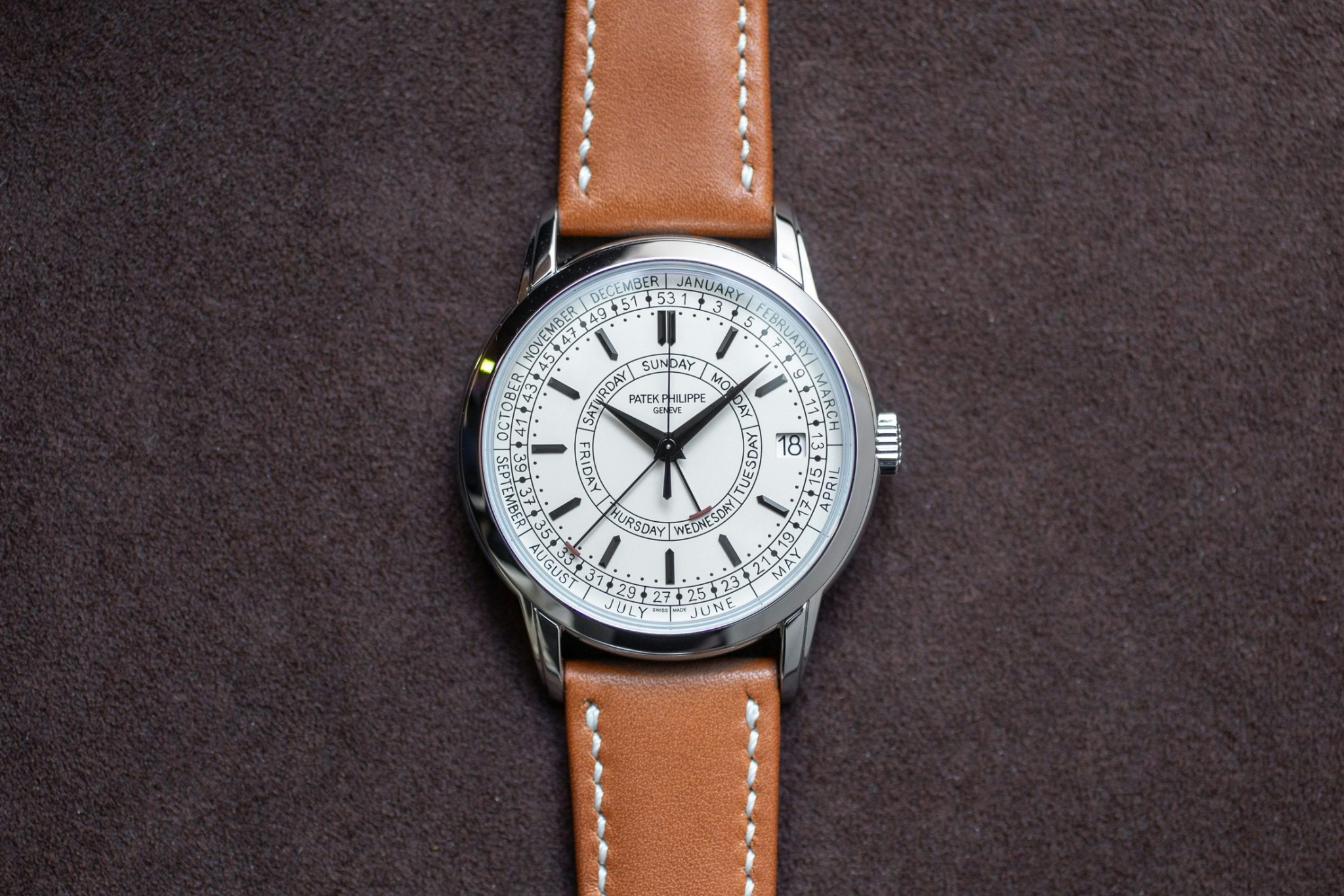 The Calatrava reference 5212A-001 introduced the Weekly Calendar complication to the Patek Philippe lineup. This model features a unique hand-written style typography for its calendar indications, distinguishing it from other calendar watches in the brand's collection. It represents an accessible entry point into Patek Philippe's complicated timepieces, offering a practical function in a non-precious metal case.