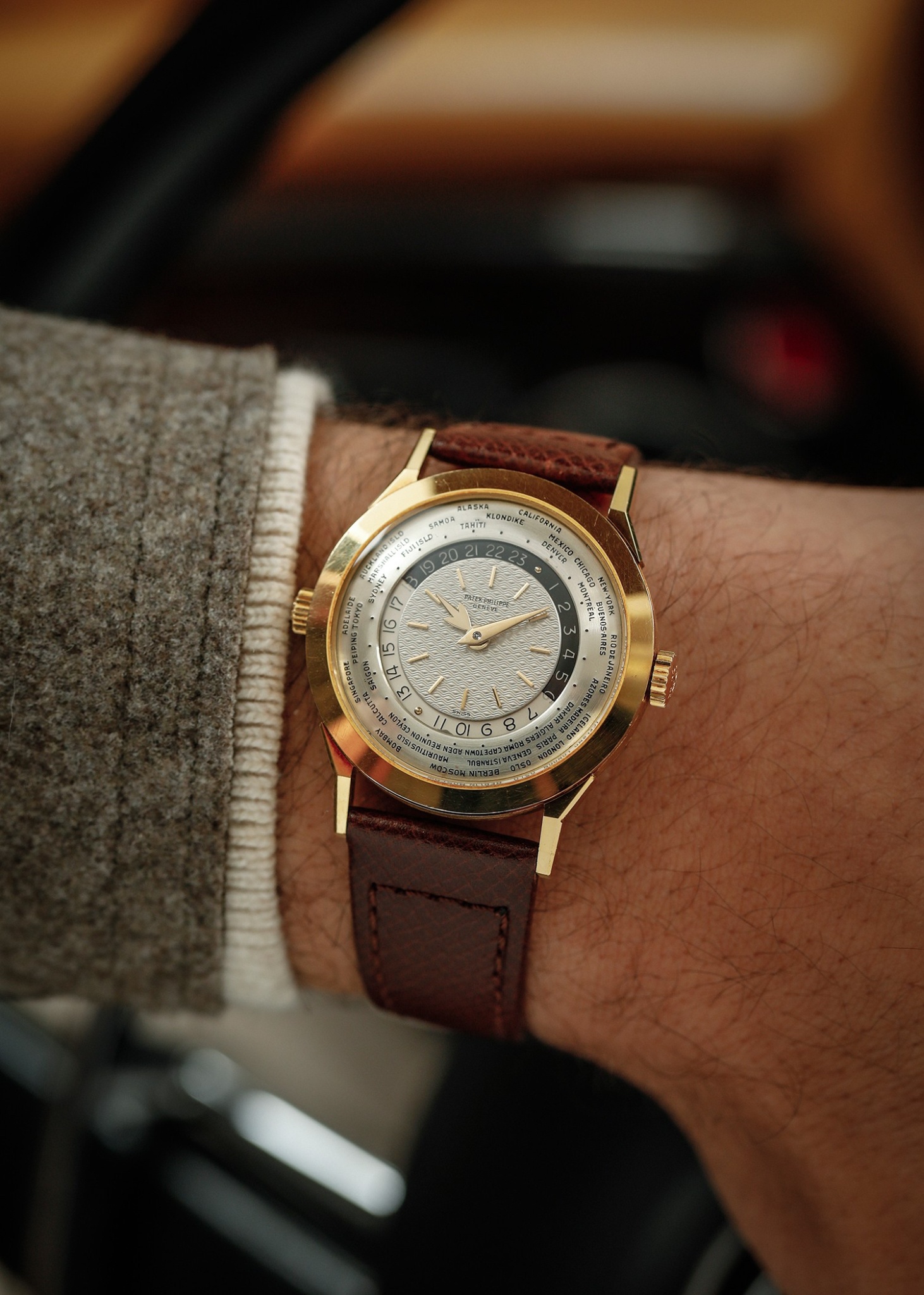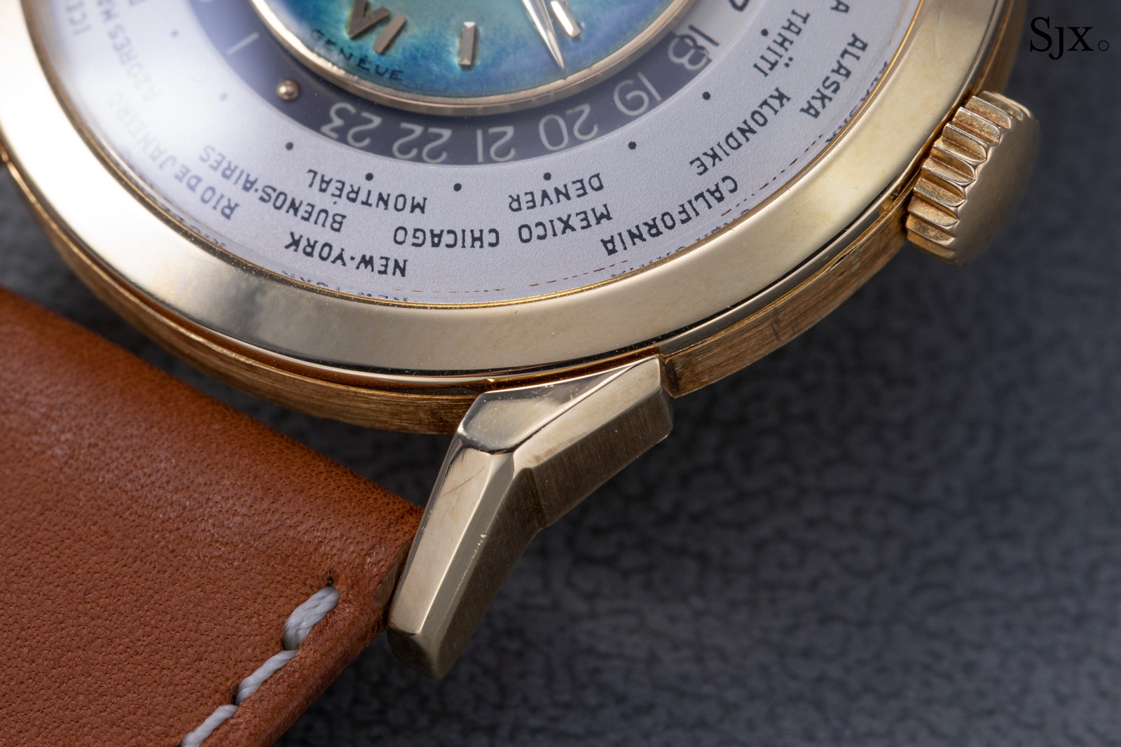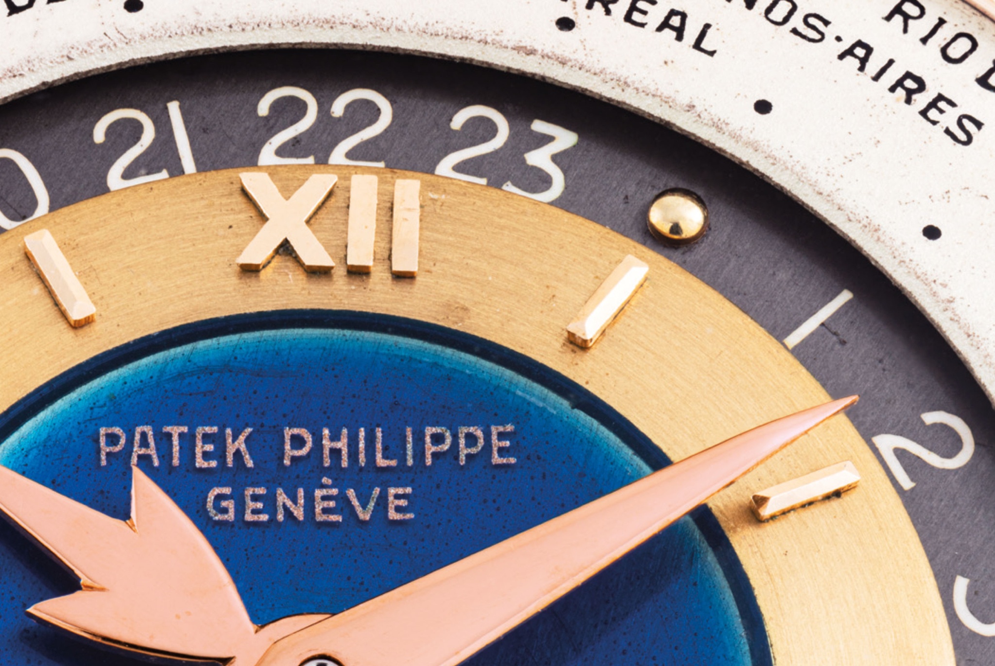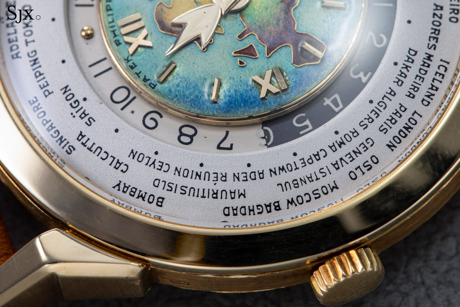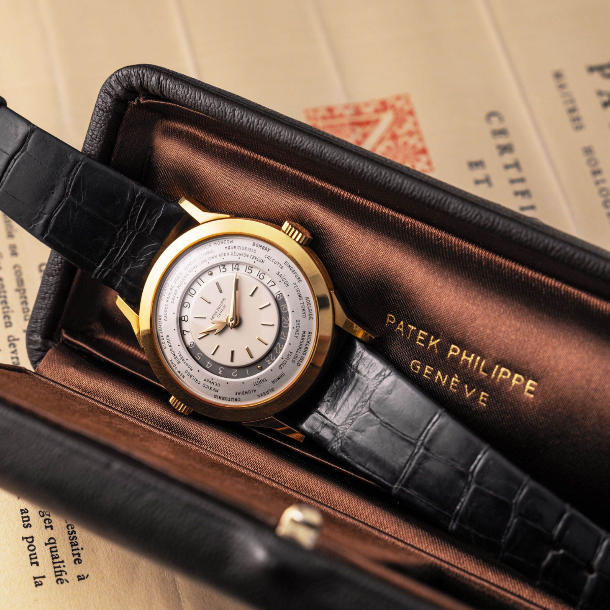 Launched in 1953, the Patek Philippe World Time ref. 2523 featured a new two-crown system, one for winding the watch and the other at 9 o’clock controlling the city disc.