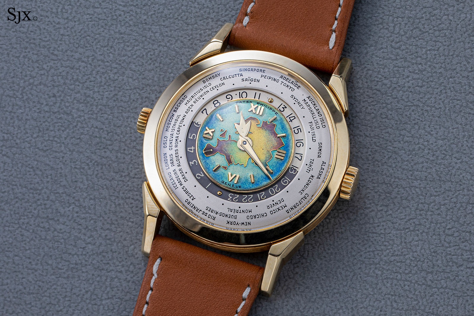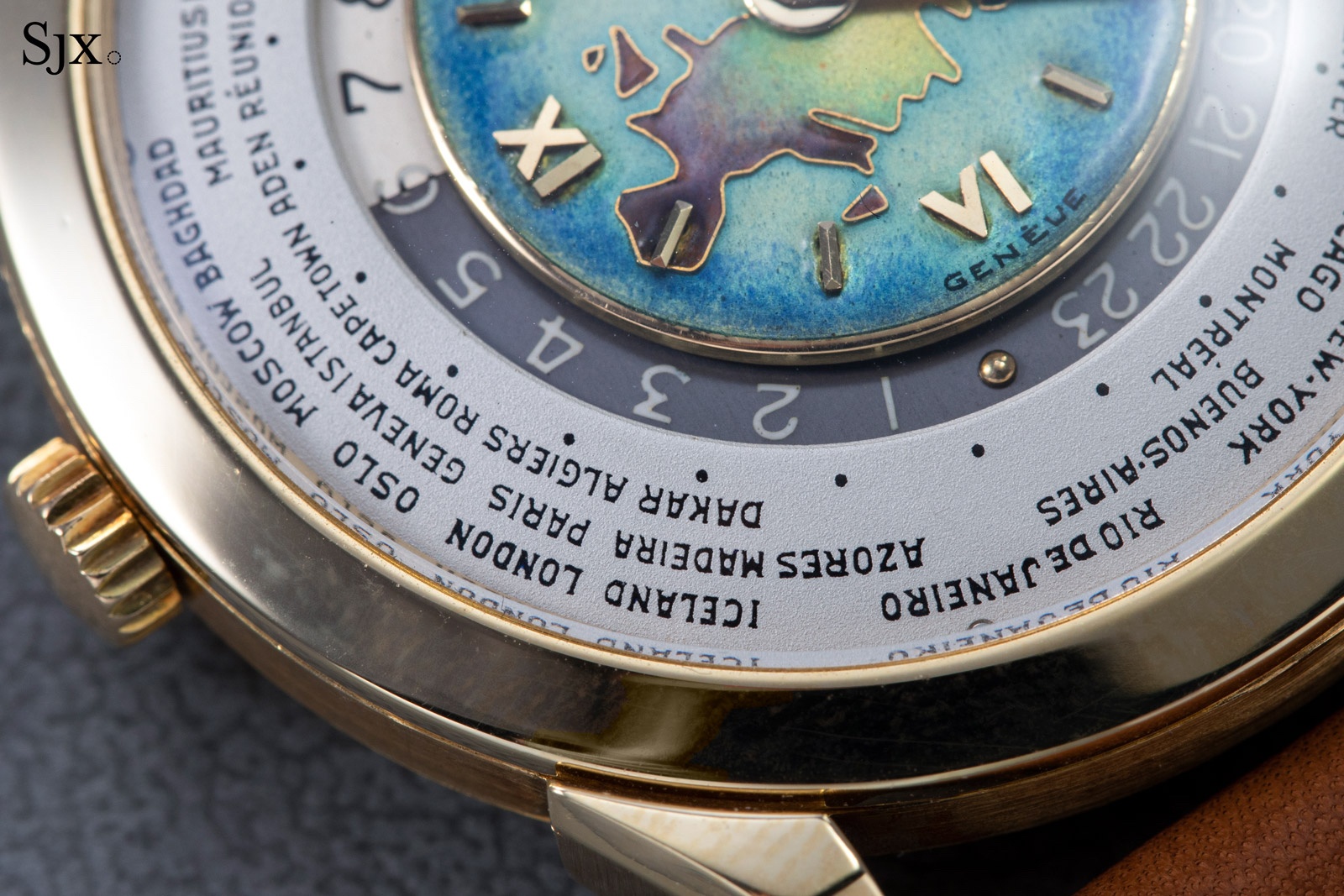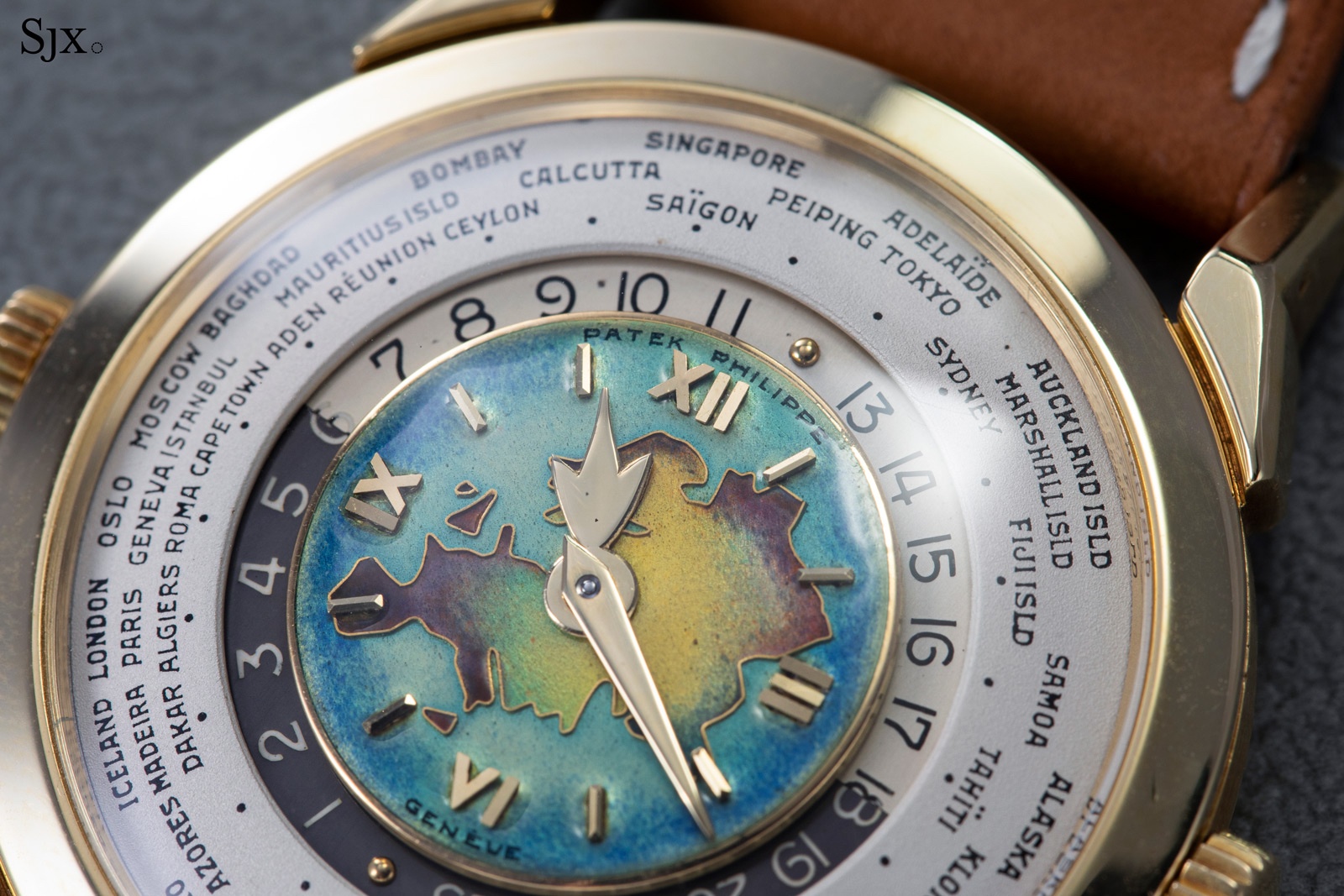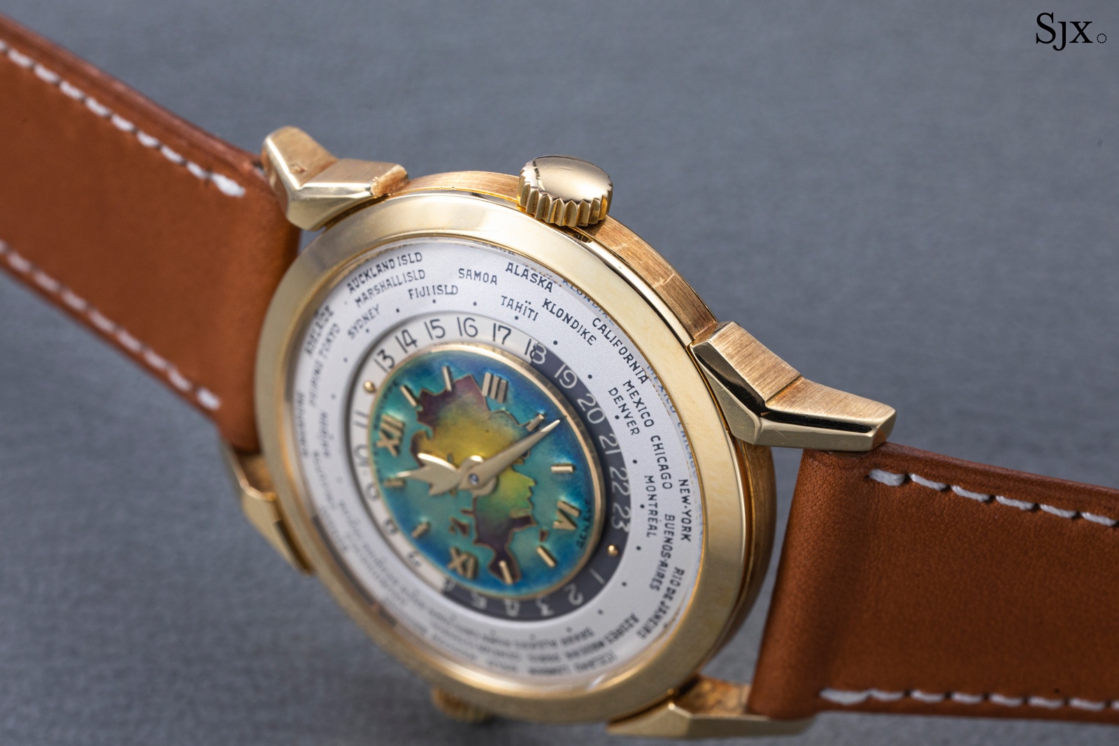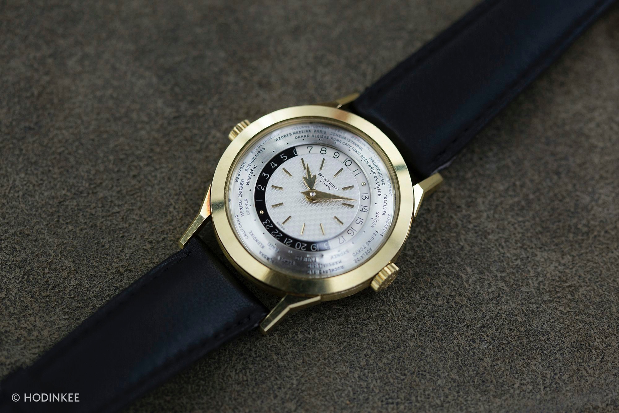 Launched in 1953, the Patek Philippe World Time ref. 2523 featured a new two-crown system, one for winding the watch and the other at 9 o’clock controlling the city disc.