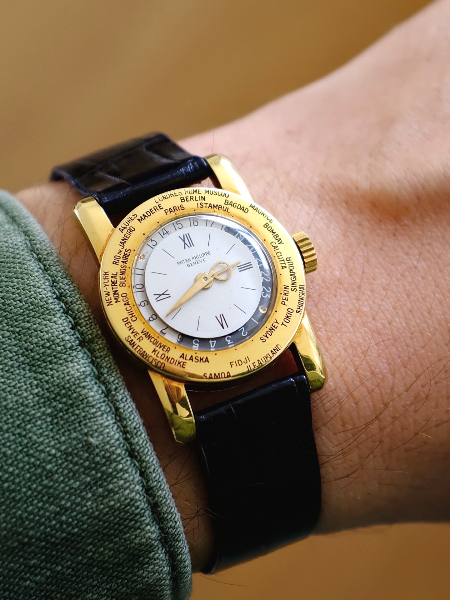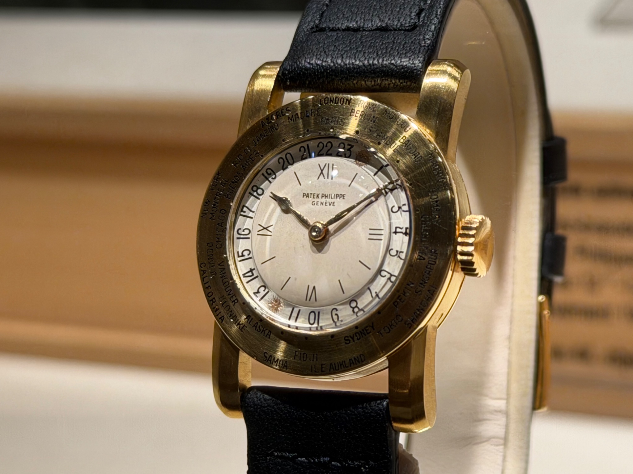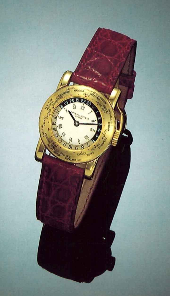 The Patek Philippe World Time reference 2523, launched in 1953, is distinguished by its innovative two-crown system. One crown serves for winding the watch, while the second, positioned at 9 o’clock, controls the city disc. This design marked a significant development in the functionality and user experience of world time complications for the brand.