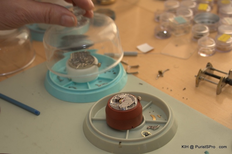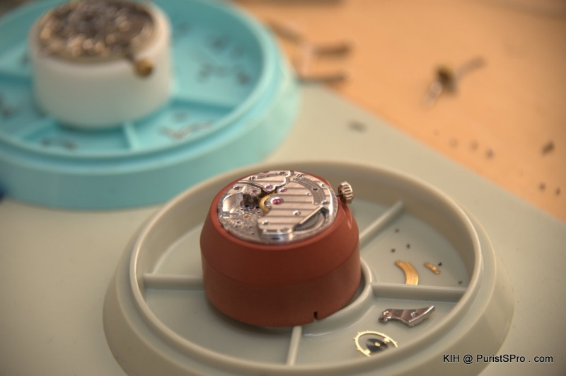 Shows the difference from 19 ligne pocket watch to 14 ligne wrist watch - was not an easy task!