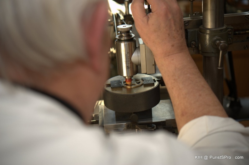 showed how he put "Cotes de Geneve" (with spinning very hard wood above). And let me touch it afterward -