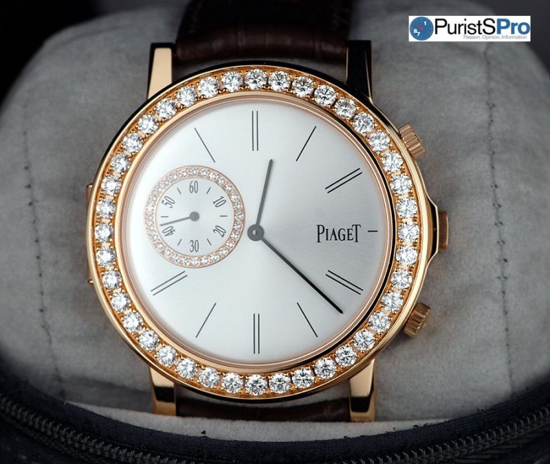 Many companies make watch cases with both satin and polished elements, just like many of them create diamond-set watches, but Piaget makes this piece special.