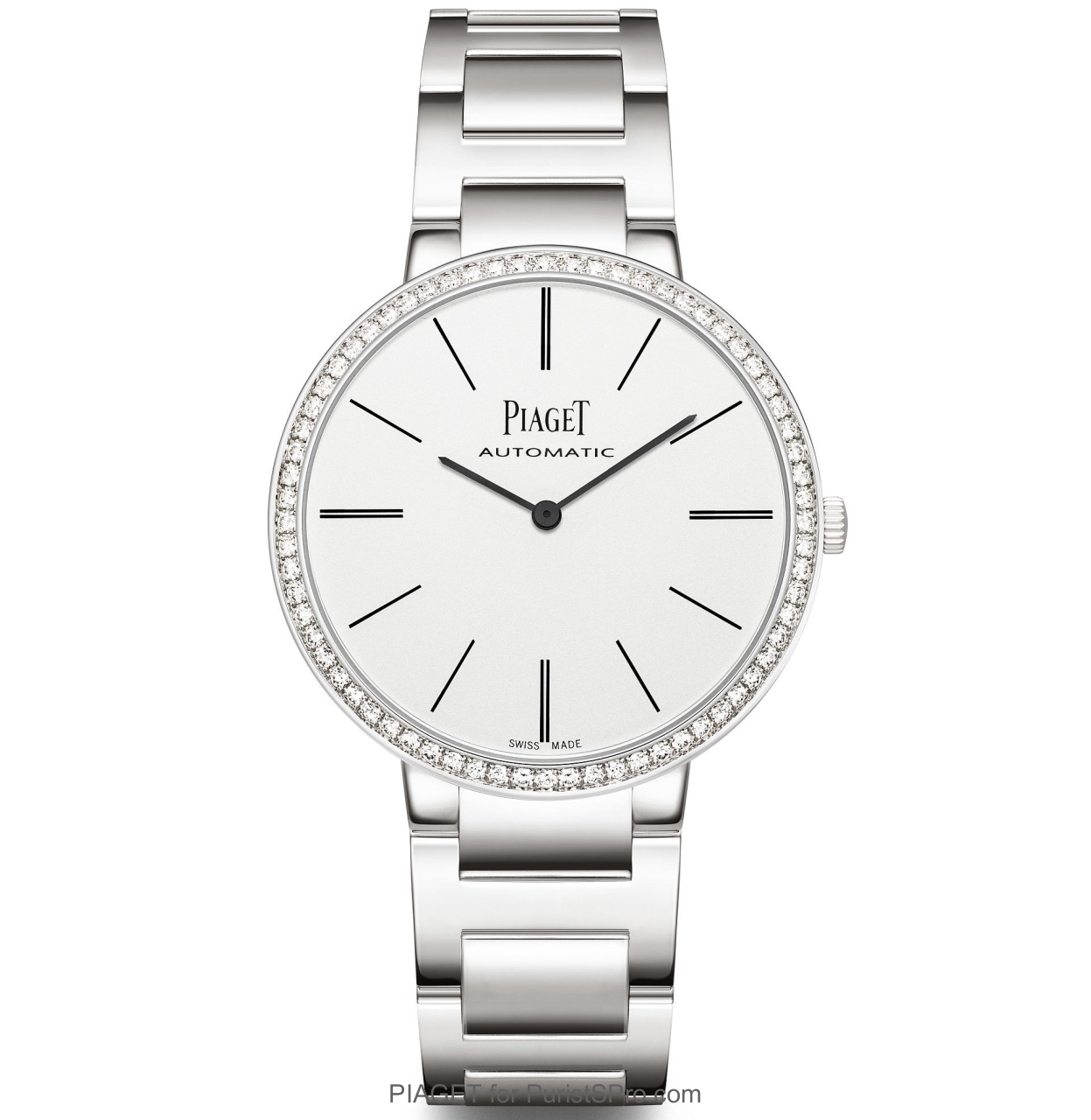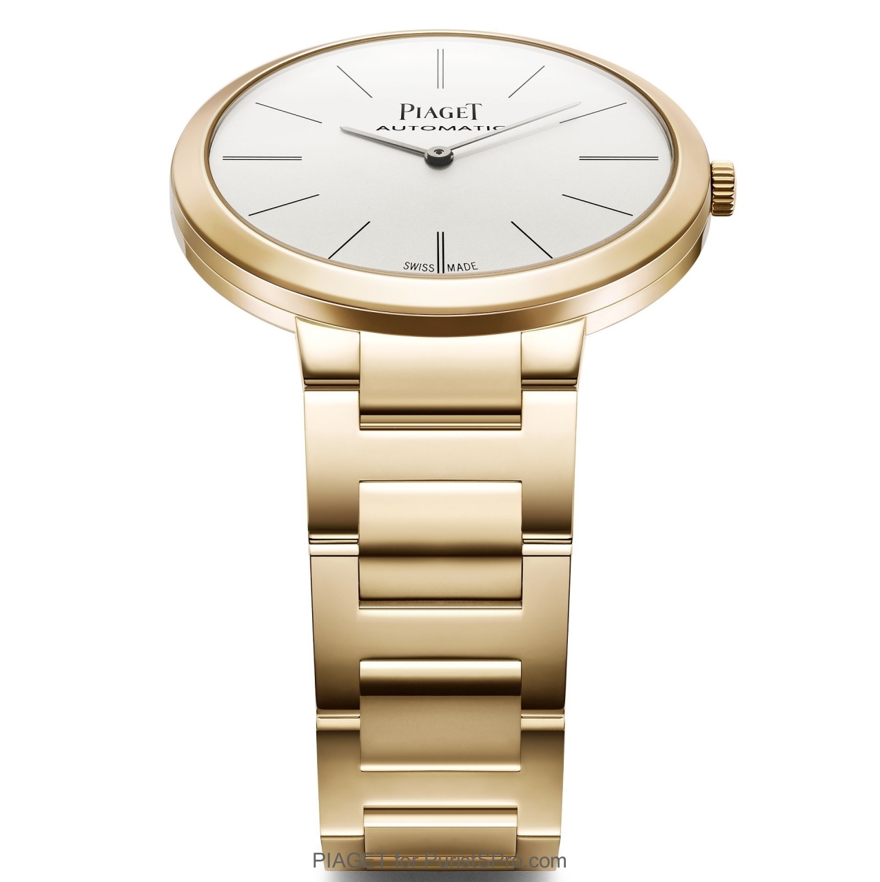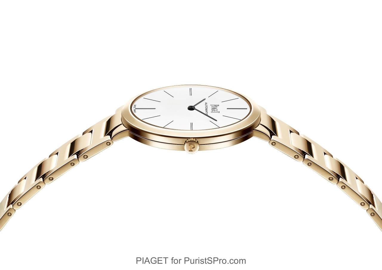 This new collection beats to the rhythm of a Manufacture Piaget 534P mechanical self-winding movement, signalled by the word “Automatic” appearing on the opaline white dial. This calibre drives indications of the hours and minutes and enjoys a 42-hour power reserve. Like all movements from the Manufacture de Haute Horlogerie Piaget, its finishes are executed in keeping with the finest watchmaking traditions and feature circular Côtes de Genève, a circular grained mainplate and bevelled bridges.