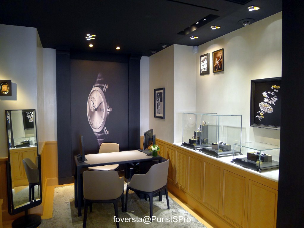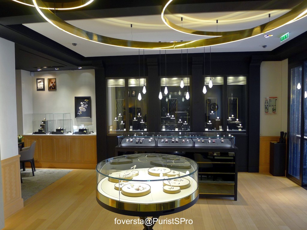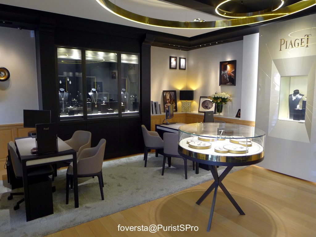 I know very well the Boutique since I have spent a lot of time inside. If I recognize the shape of the Boutique (it is difficult to move the walls...), all its lay-out was redesigned to make it more open, more comfortable for the clients and visitors. We find again the contrast between the materials, the black, light brown and white elements, the soft lights. The objective was to make the place more elegant, sober and quiet at the same time. There isn't any aggressive luxury display and at the end, you only feel the refined atmosphere faithful to the Piaget image. The goal is achieved since I really felt the difference when I visited the Boutique a few weeks ago.