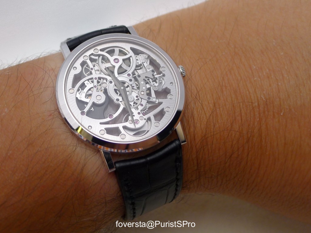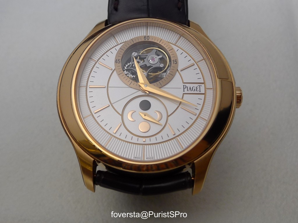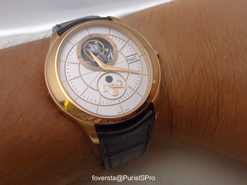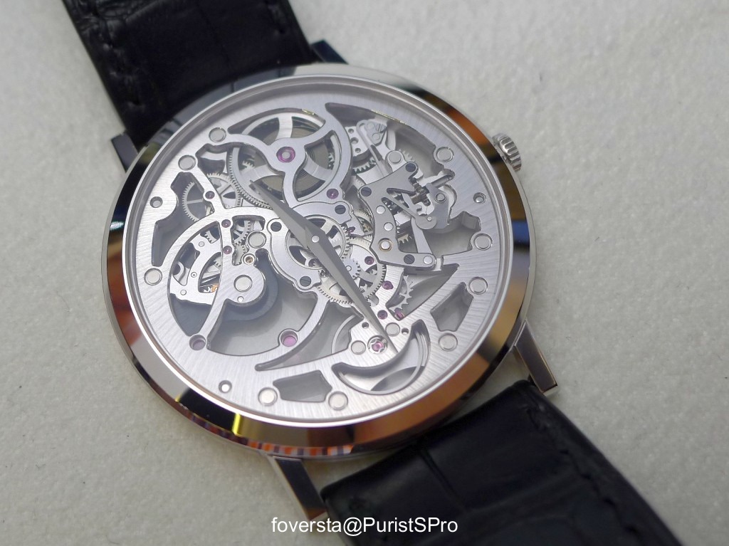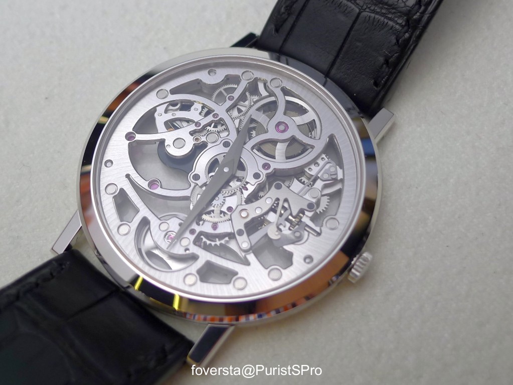 A technical and aesthetical marvel. The 38mm case allows the movement to fully fill the case which is an excellent idea. It is a much more convincing watch, at least for my taste, than the Altiplano Skeleton Handwind (40mm diameter). Maybe my fav Piaget of these last years.