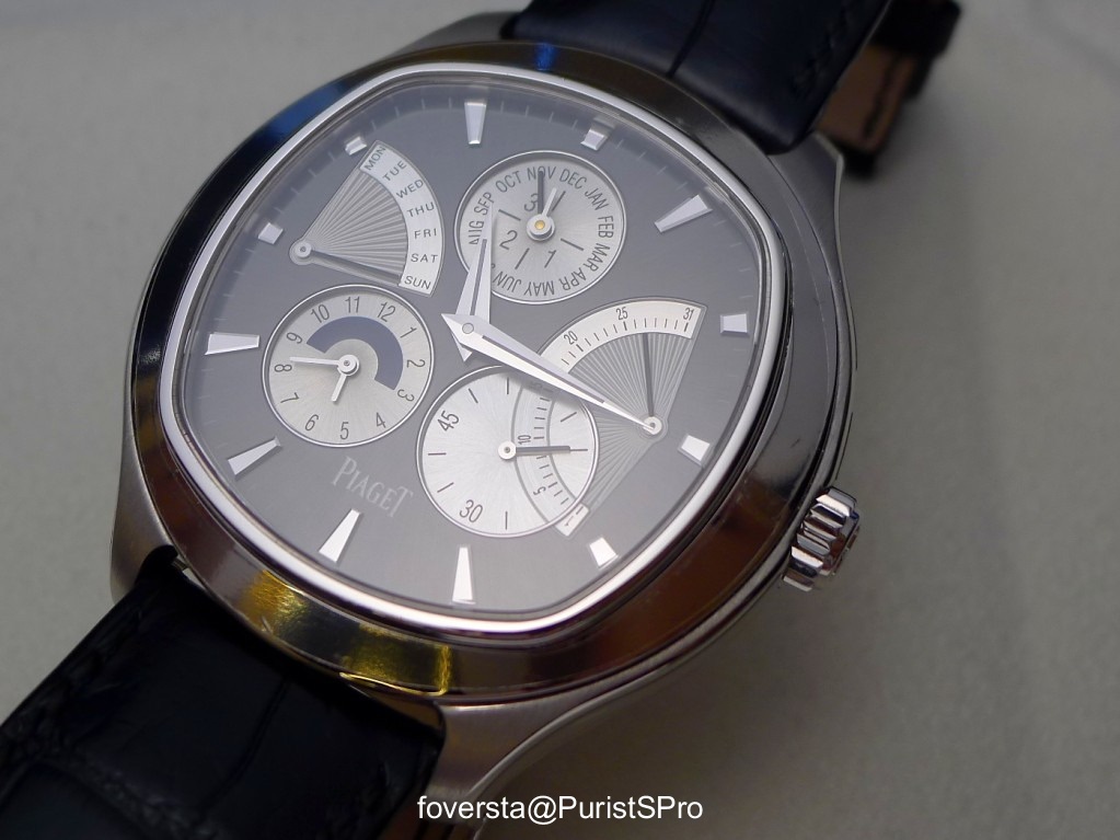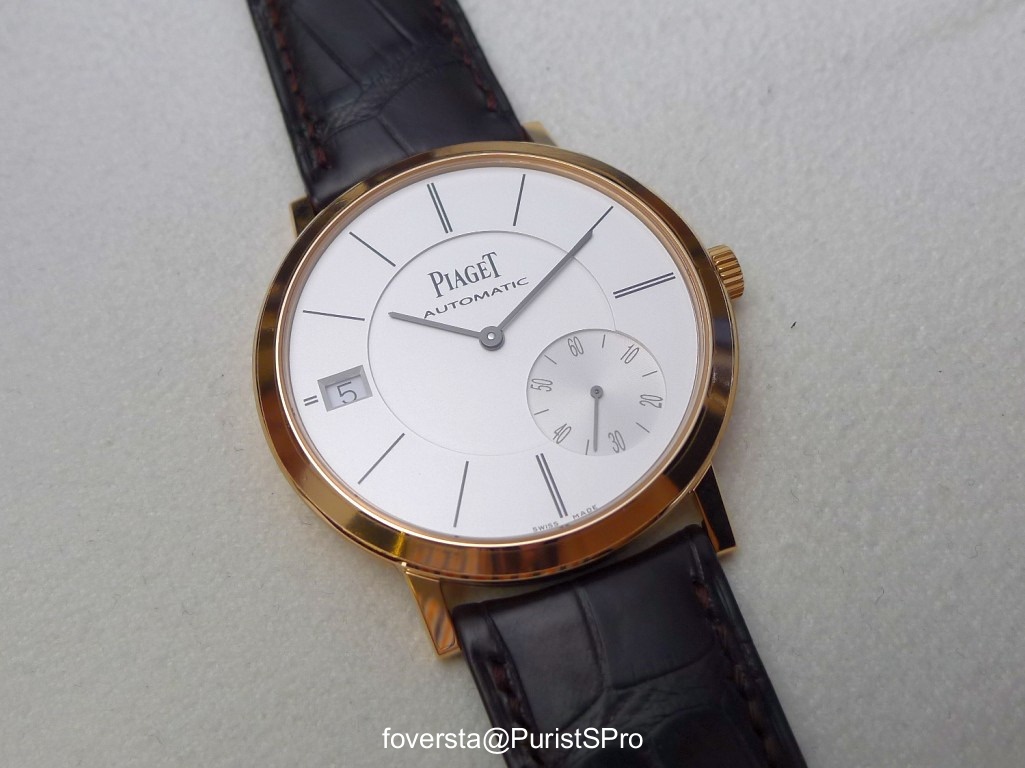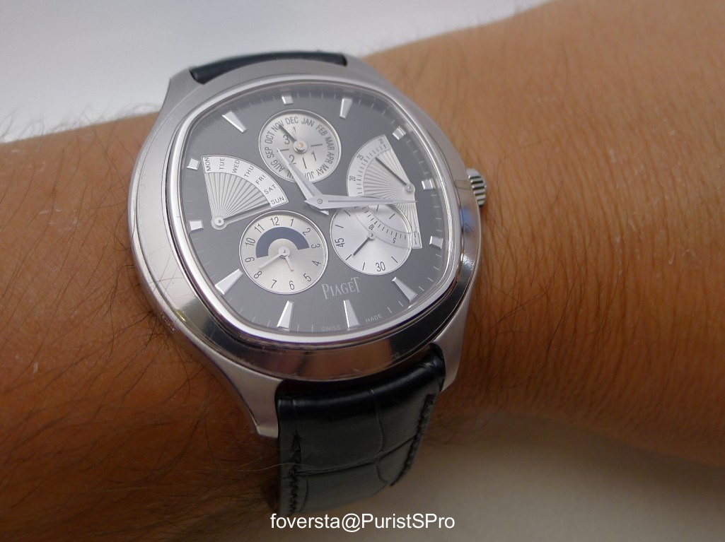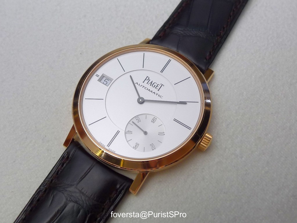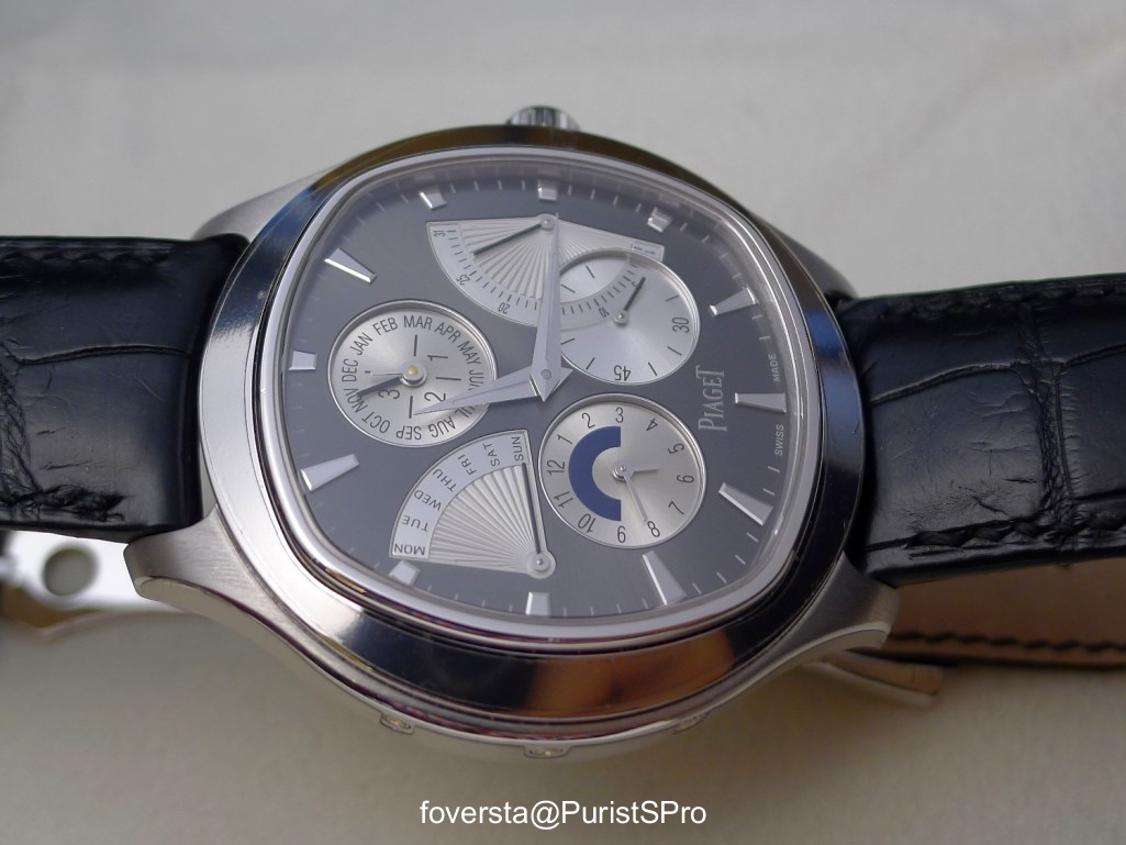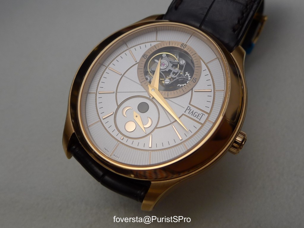 A technical and aesthetical marvel. The 38mm case allows the movement to fully fill the case which is an excellent idea. It is a much more convincing watch, at least for my taste, than the Altiplano Skeleton Handwind (40mm diameter). Maybe my fav Piaget of these last years.