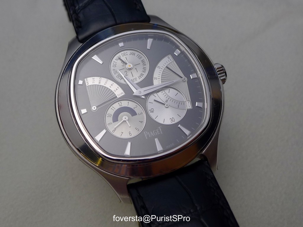 We leave the Altiplano collection with this Emperador Coussin Perpetual Calendar.