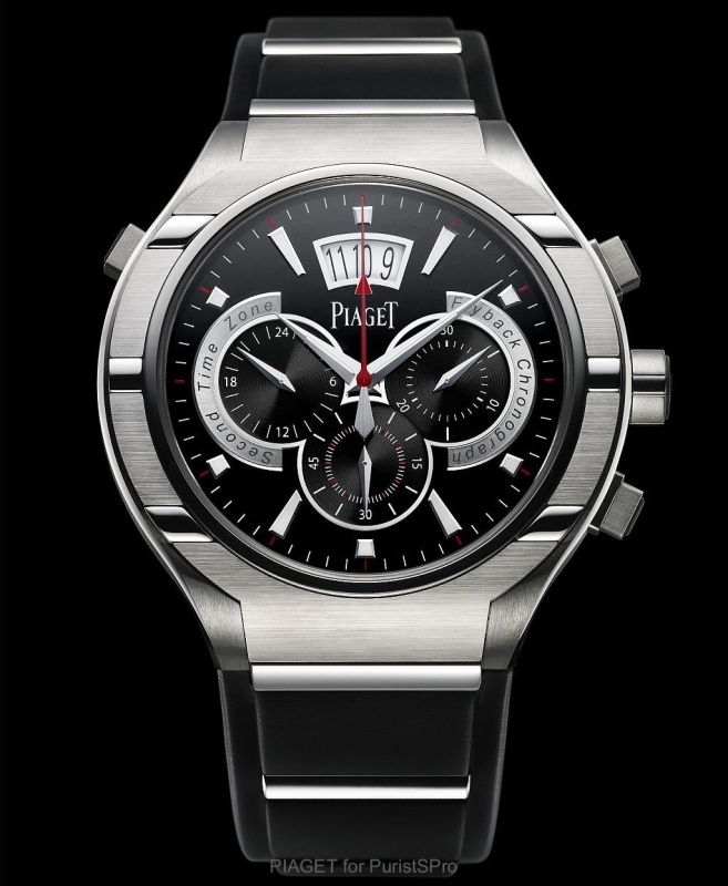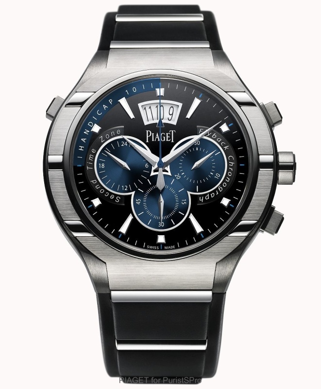 It was a significant movement that could fit in a Piaget Polo case. In keeping with the Piaget Founder's motto: "Always do more than is necessary", Piaget decided to add fly-back and 2-time zone functions.