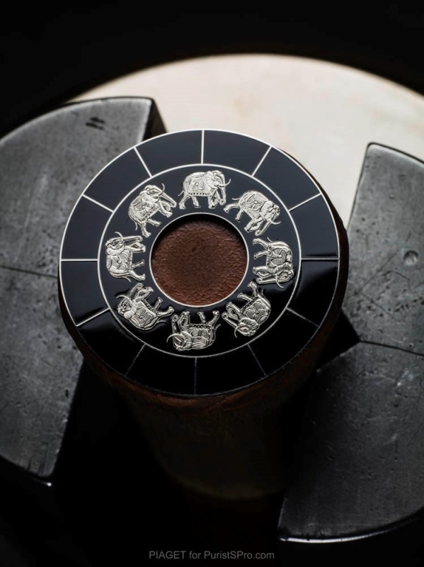 Dial : Black champlevé enamel, hand-engraving (elephants )