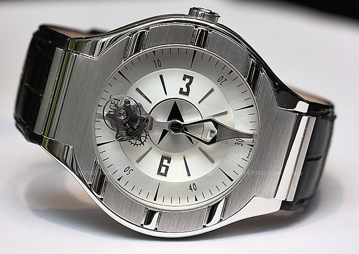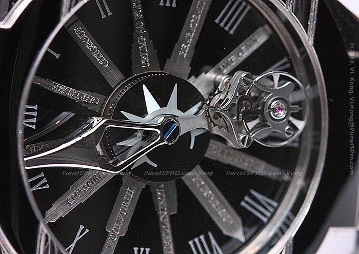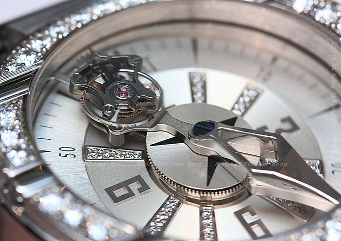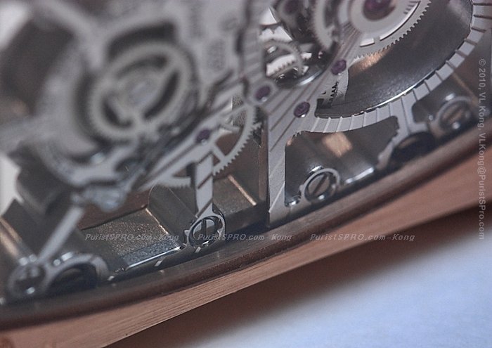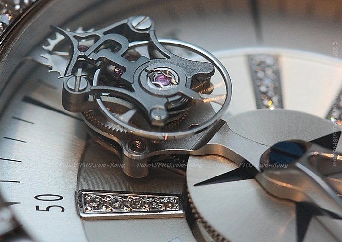 A closer look at the flying tourbillon which has its centre of