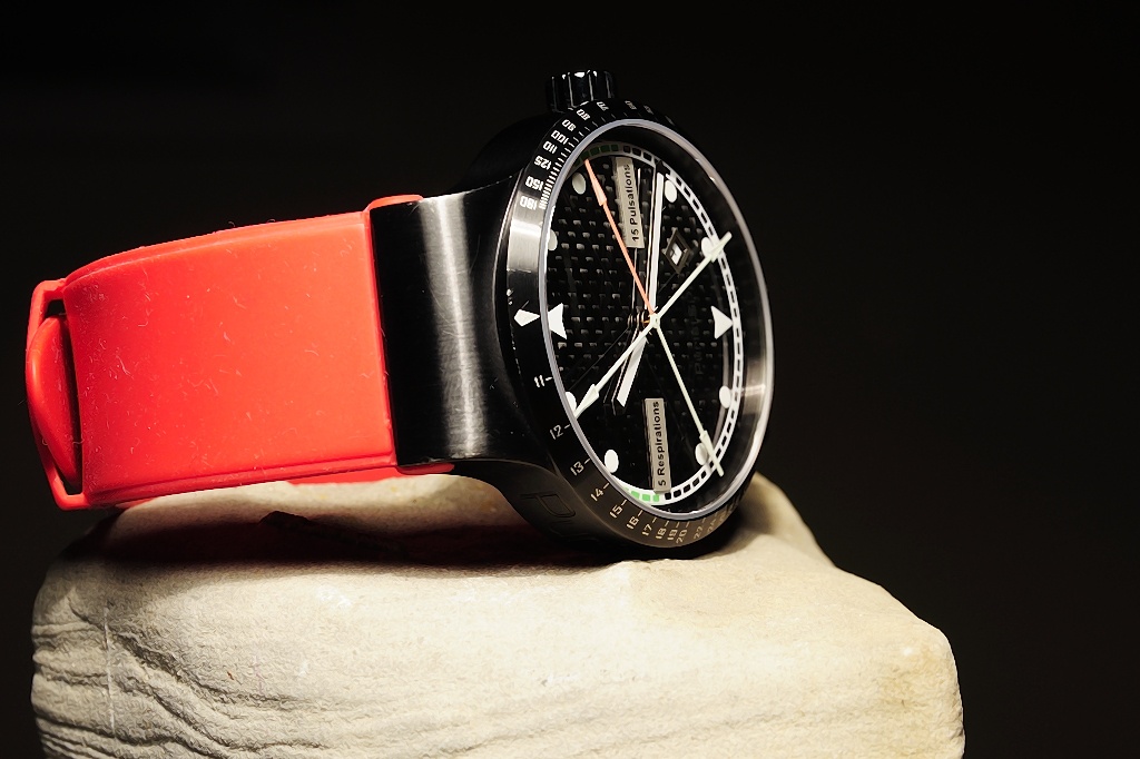 - the hour indexes seem to float on the carbon fiber dial, almost like they were white tiny discs on a dark lake.