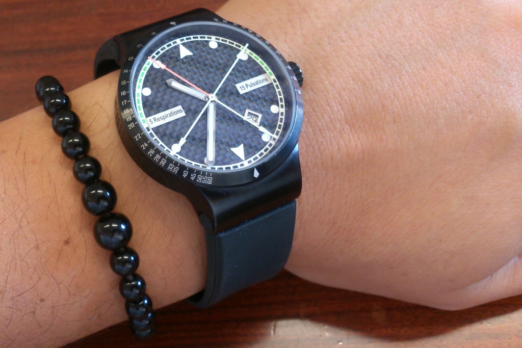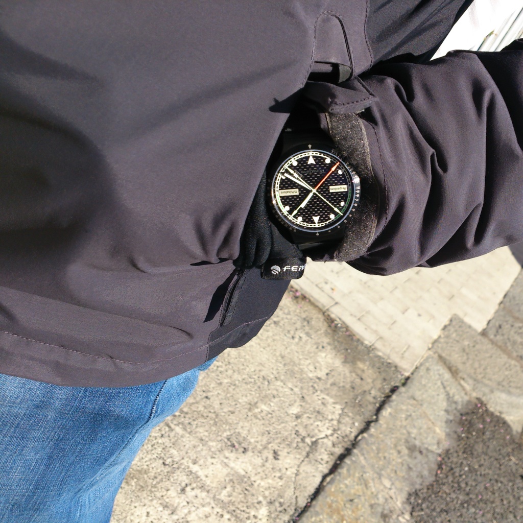 - it's not a small watch, nor a shy one, but it's correctly proportioned and its dark look makes it appear to be just perfect on my wrist, that measures 17,5 cm. It's not a light watch, yet it is comfortably, because it sits correctly on the wrist (mainly thanks to the lugs shape) and despite the crown inevitably hurts the back of the hand (after a pair of days of continuous use I have a visible sign on it). As with other thick&large watches of mine, it isn’t exactly the right choice when I’m wearing tight-fitting sporty jackets.