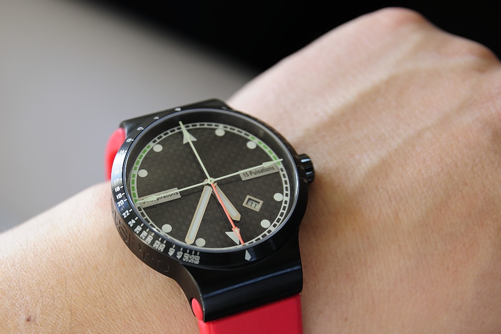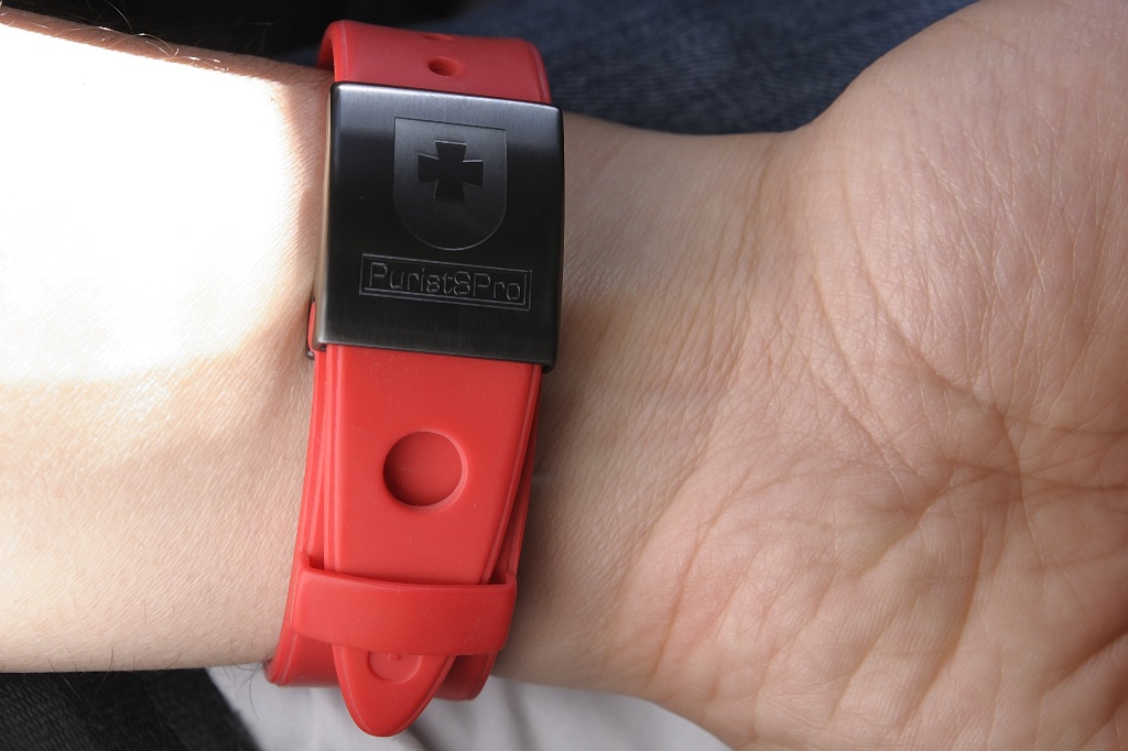 Ok, it's time to put on the red strap and the metallic buckle (sufficiently easily) and try the feeling on the wrist: