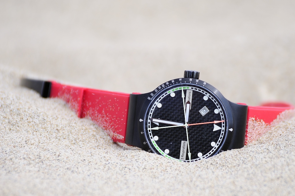- I prefer the ABR by far with the red strap: the black one is too boring and serious; maybe, in some occasions this under-the-radar look may be better. The black strap smells more that the red one, I wonder why.