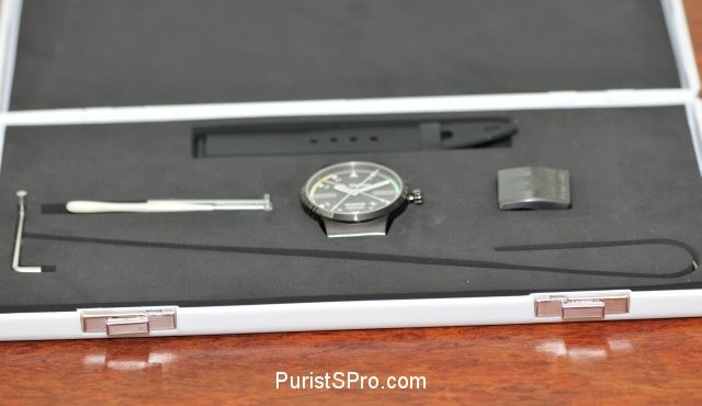 Case holds watch, straps, buckle, cleaning tool and 316L "sterilisation hook"