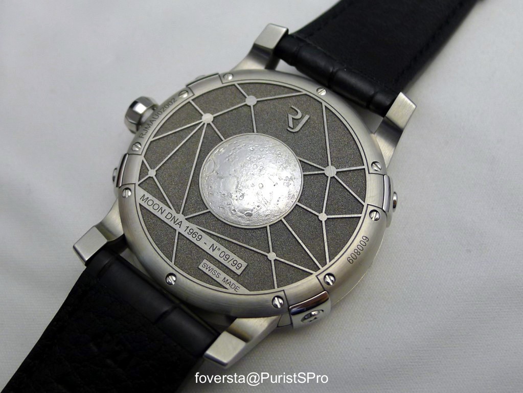 The 4 watches of the Moon-DNA "1969" are available in limited editions of 99 pieces each with adjusted prices: less than 9,000 CHF for the watches with silicon dial, less than 10,000 CHF for the meteorite dial watch.