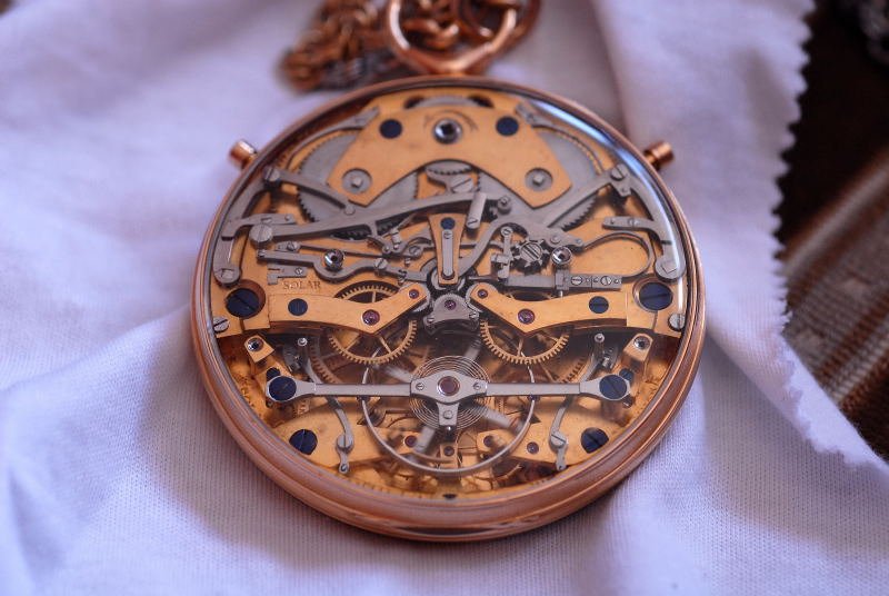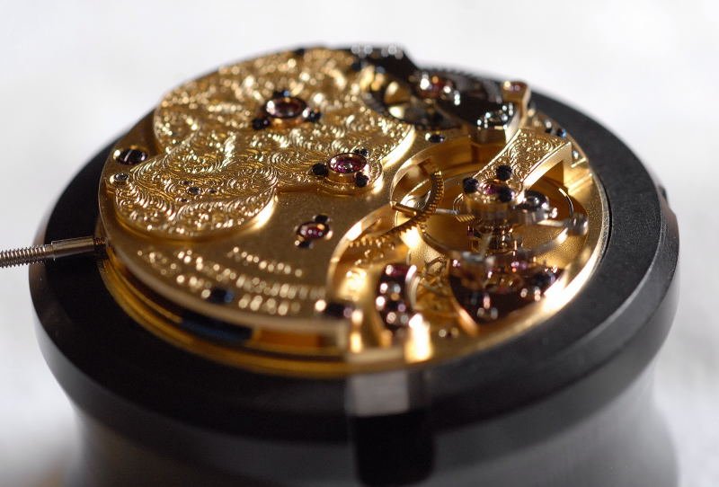 I asked him if since selling the co-axial to Omega if there had been any feedback on the movements, how often they had needed maintenance, or had needed replacing. He had no idea. On some of the pocket watch movements, where the co-axial had been fitted, the fourth wheel had some small metallic deposits building up (visible through a high powered microscope), but no one, not George or Roger, could fathom out why.