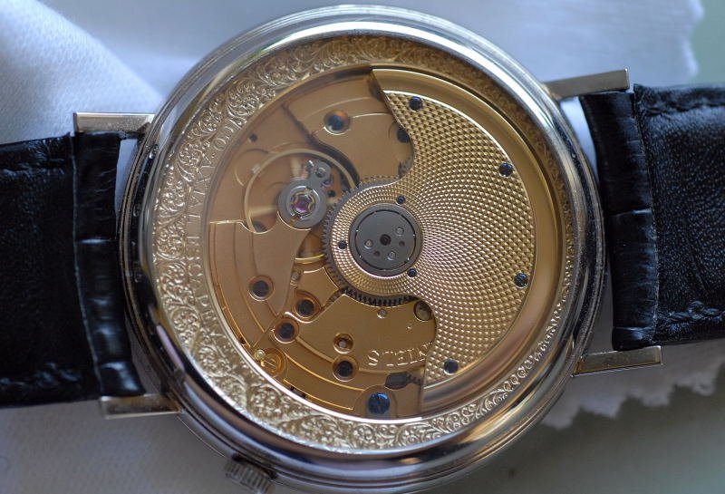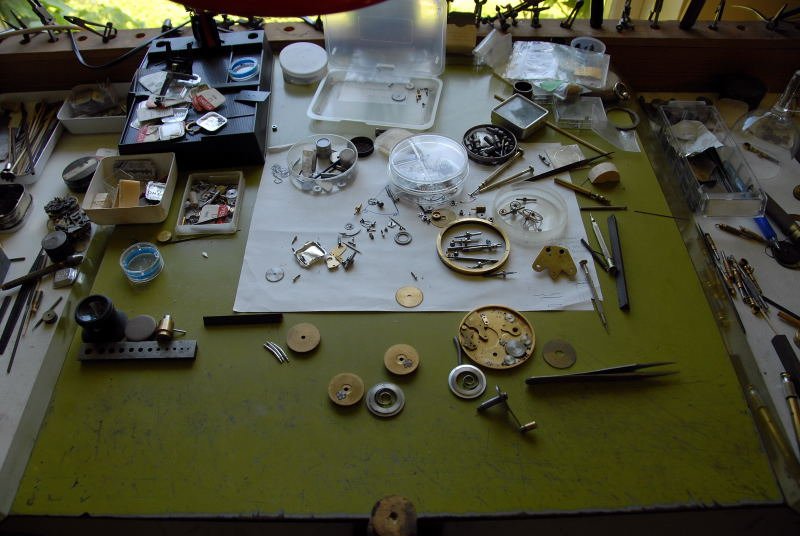 George moved to the Isle of Man in the late 1970âs when the situation in terms of taxation and livelihood meant that he could no longer remain viable as a business in London. He moved to a large house with grounds, outbuildings that were turned into garages for his car collection, and in the garden, a small pre-fabricated building was built as his workshop. George still works in his workshop for a few hours a day and is still active. When visiting him, I found him working on a remontoire escapement for a pocket watch. As with all the English watches, each component is made by hand, and experimented with, some parts remain in place; some are consigned to the âgraveyardâ.