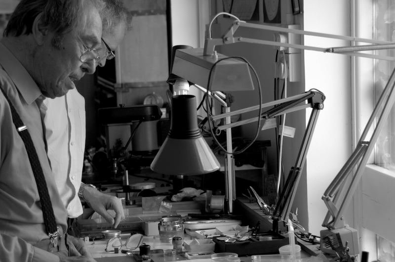 âWe are all that are left for English watch making, Roger and I; no one makes watches as we do anymore; designing the watch from scratch, developing new movements, and hand making and hand (English) finishing it from start to finish.â The quartz decimation of the Swiss watch industry did have one positive effect, as watch firms were going under, George toured Switzerland buying up the old machines and lathes and he was able to re-equip his work shop. Ironically perhaps, but the machines George and Roger use are Swiss made to make English watches.