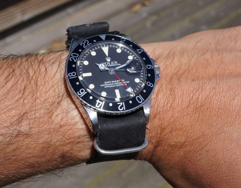 A Vintage GMT from your birth year! That would be something I'd lve to find, but I am still in the hunt. ;) Your pepsi bezel is very nice, though. You should not reject it, as it is part of the DNA of these watches! But I have to admit that the black insert works very well, too... Closer to a Sub, actually. Best! Nicolas