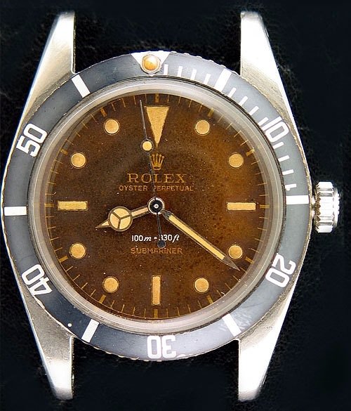 Being often used on boats, beaches, in tropical countries, etc….diver’s watches were often more subject than others to moisture and heavy sun exposure. This has lead to some spectacular patinas on vintage Submariners !