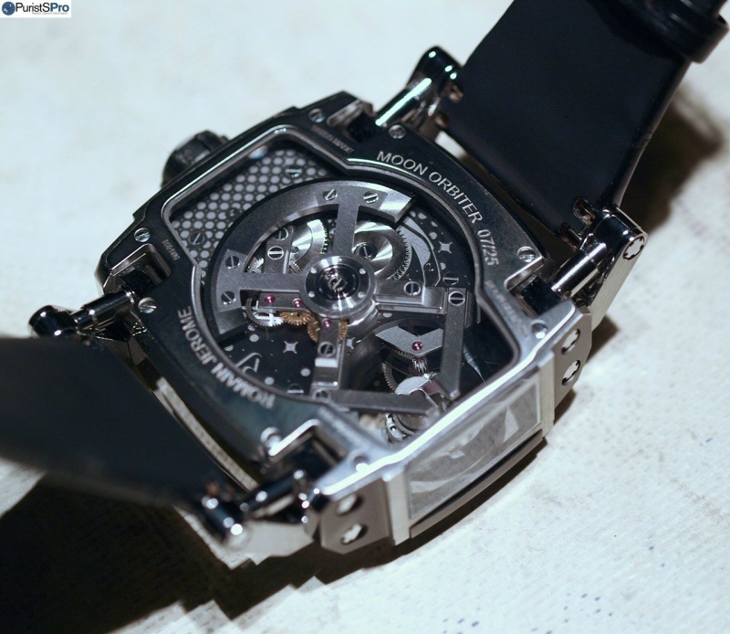 Again Manuel Emch had something under his sleeve - the uncased movement! And like the Moon Orbiter's clockwork its outer appearance belies the technology within (which is where the third mastermind behind the project comes into the picture: Jean-Marc Wiederrecht and his team at the Geneva-based manufacturing facility Agenhor):