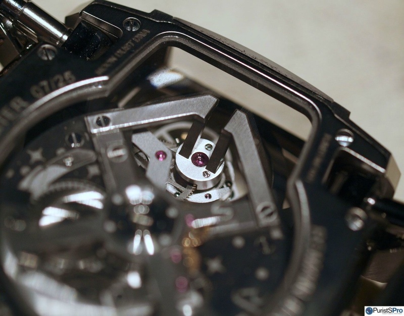 The material must be quite expensive as much surface is made of sapphire crystal ;-). I like how the RJ designers have used the available openness to emphasise the tourbillon suspension: