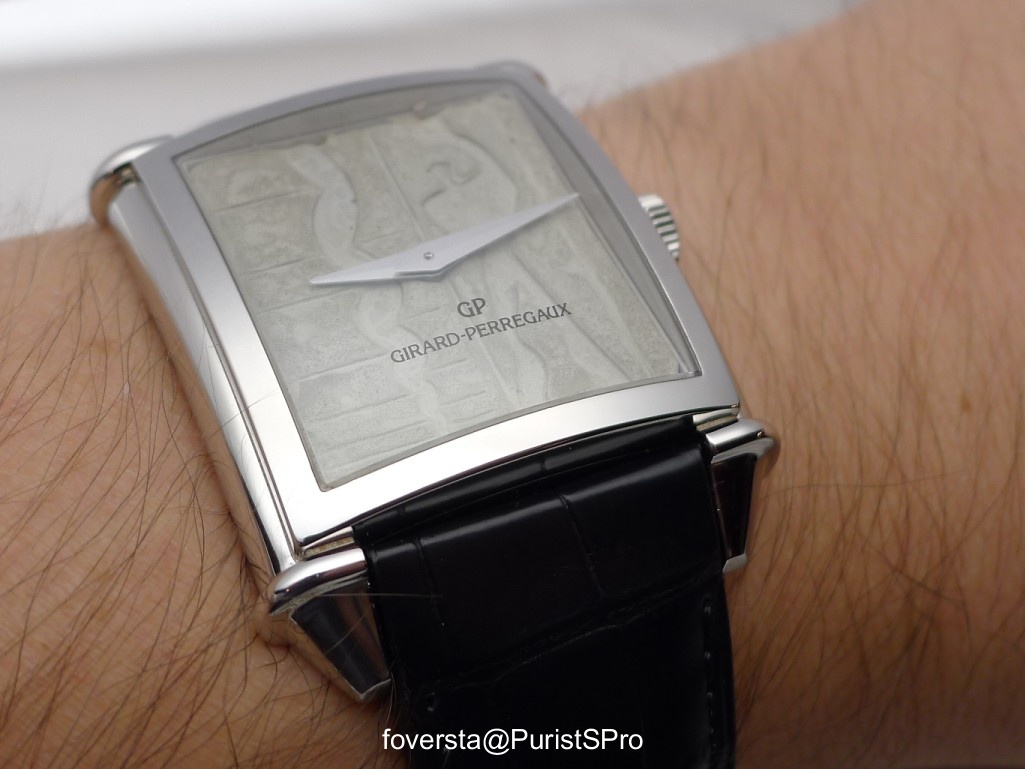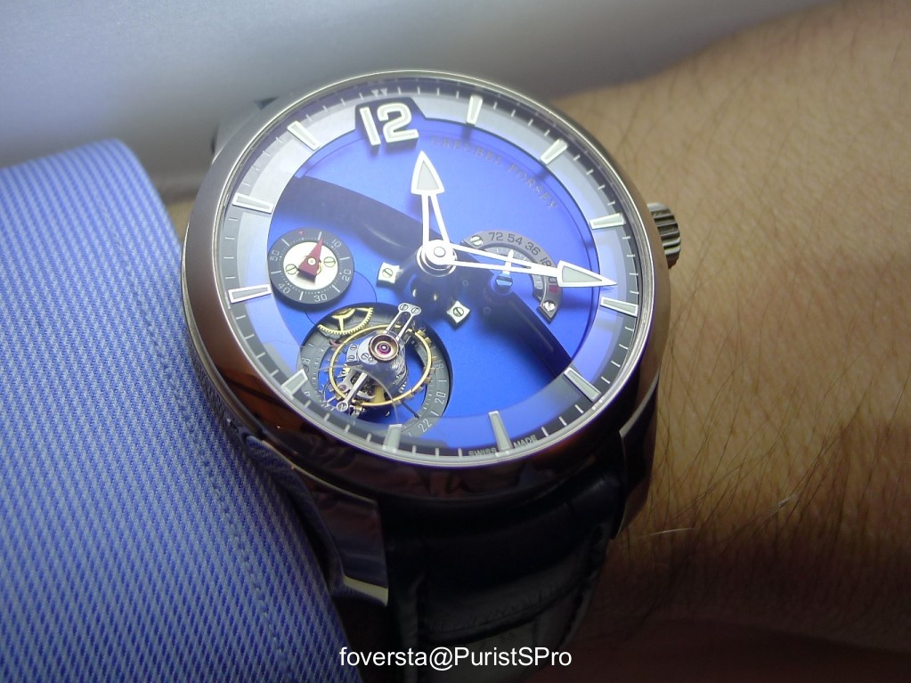 This is the prototype of the Tourbillon Contemporain worn by Stephen Forsey. The power reserve indicator is different from the final version.