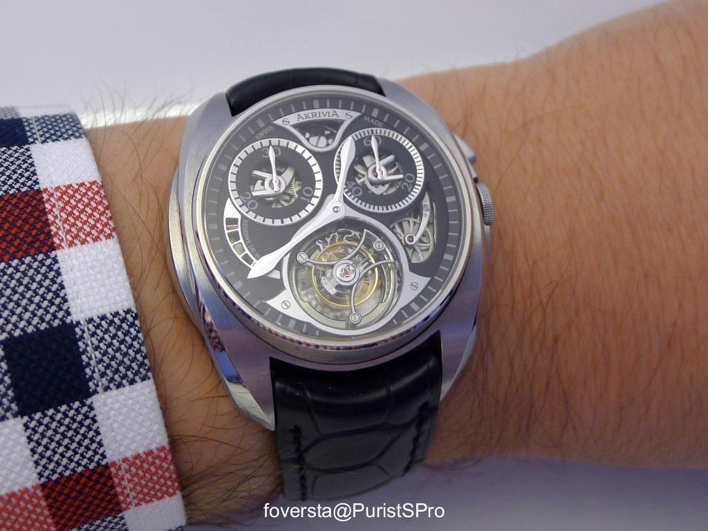 Akrivia is a brand founded in 2012 by young watchmaker Rexhep Rexhepi. The first watch is a Tourbillon monopusher chronograph whose movement is based on the BNB caliber: