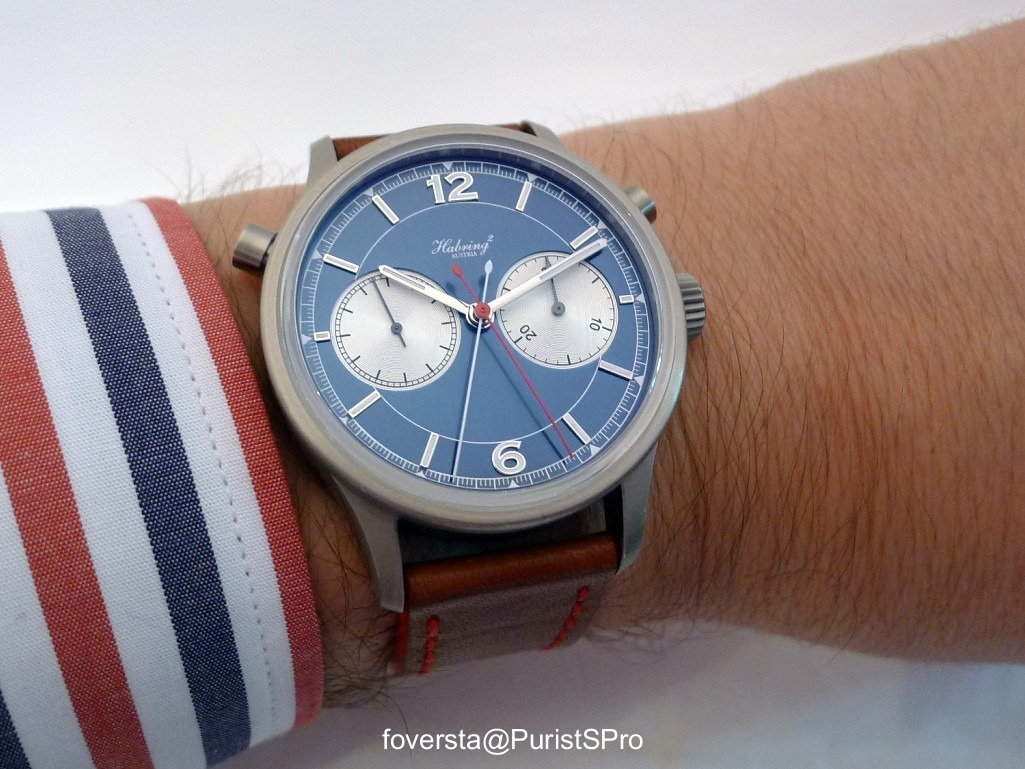 This Split Second chronograph from Habring with blue dial and titanium case is a wonderful watch. I could spend hours watching its dial.