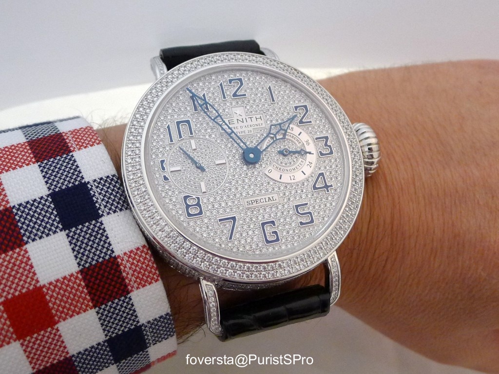 Sometimes, a brand may become crazy! I don't know what Zenith had in mind when they dediced to release a full set version of the Pilot Type 20 watch (yes, the big one with a 57,5mm diameter). It is a LE of 5 pieces.