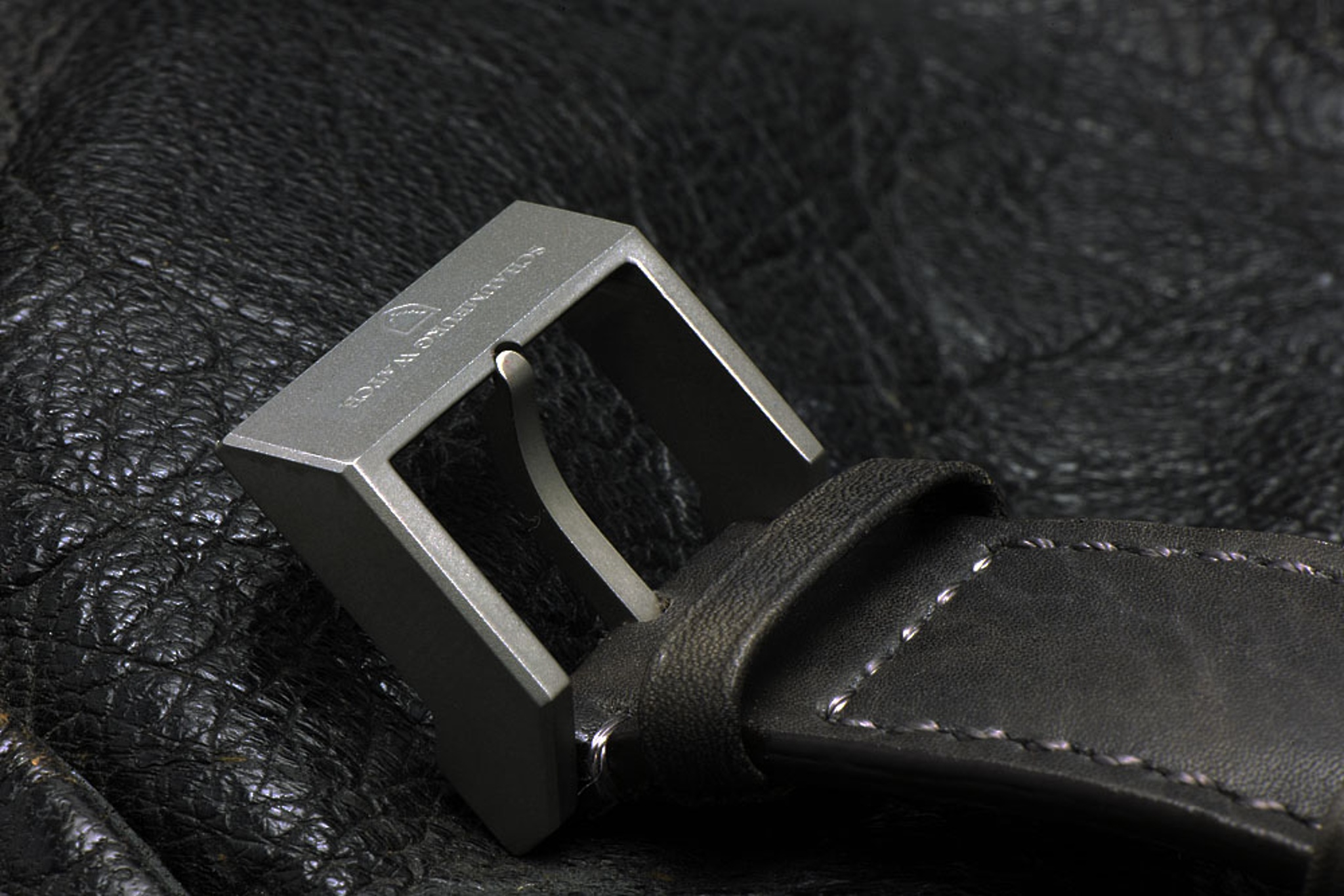 While the clasp is made of titanium and has the company name embossed.