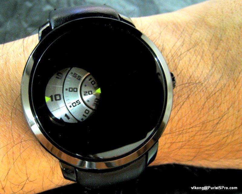 For example, using the two green triangular-markers reference, the time displayed is 10:43 and 48 seconds. The discs rotate clockwise!