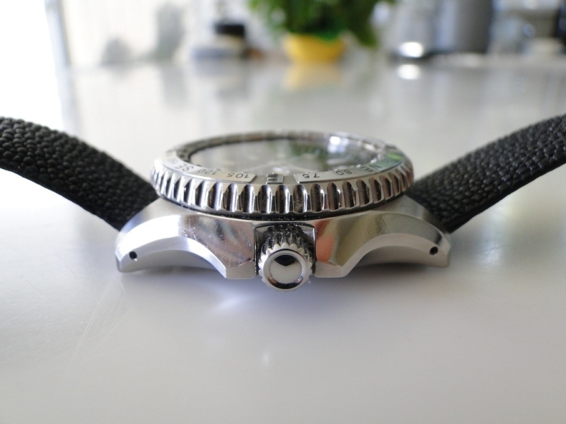 It's definitely intended to be a tool watch, featuring beefy, smooth surfaces, drilled lugs for thick spring bars, screw-down crown, etc.