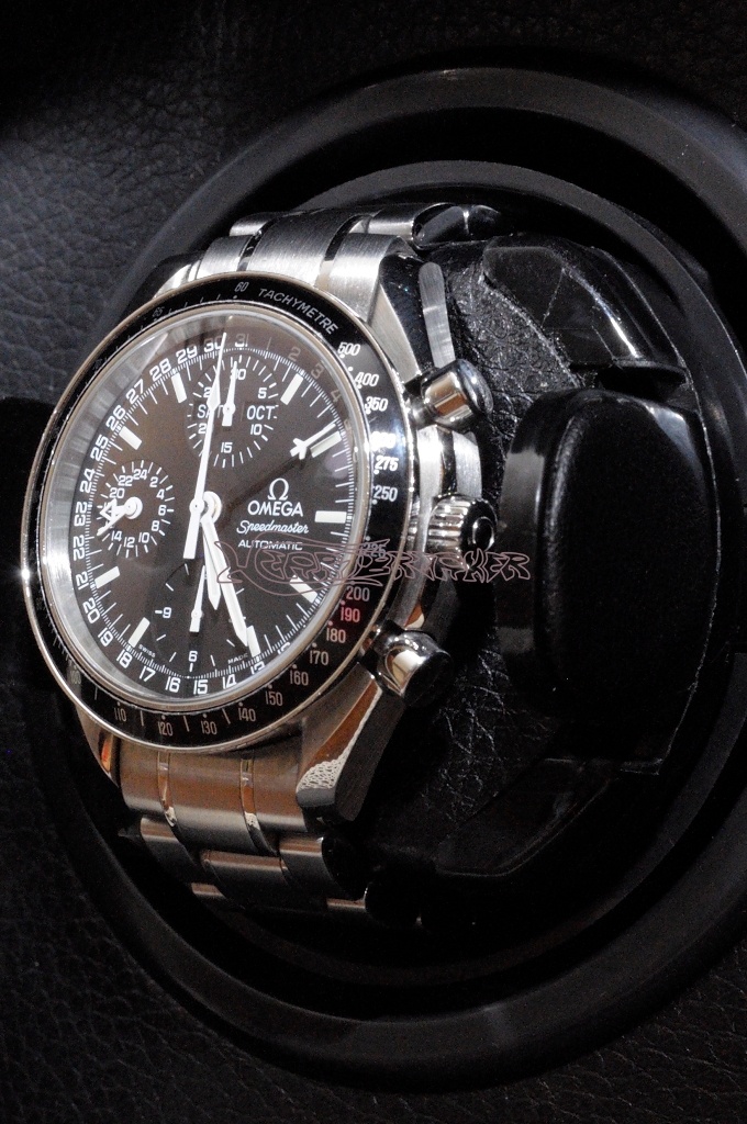 The next step inevitably was to put two watches on the watch holders. Well, not exactly two "watches", since I've put my trustworthy Omega Speedmaster Day Date and the plastic prototype of the timepiece designed by me (hopefully, it would be ready within September 2014). Unfortunately, I've forgotten to remove the proto, so in the next pictures you'll find an ugly "Top Secret" sticker covering it. I apologize for this inattention.