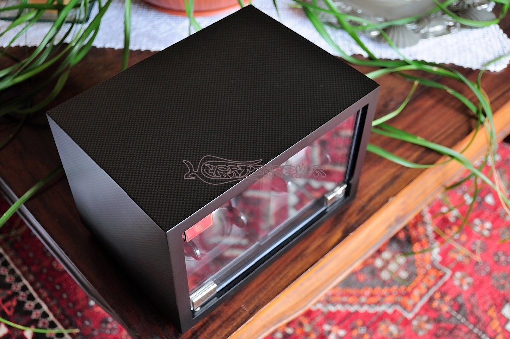 Et-voilà: the prize is naked for the first time! Please, notice the carbon fiber finish of the wooden housing!