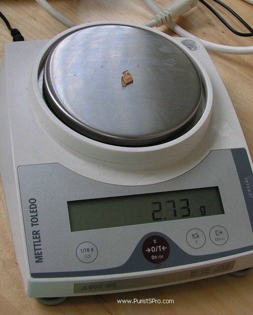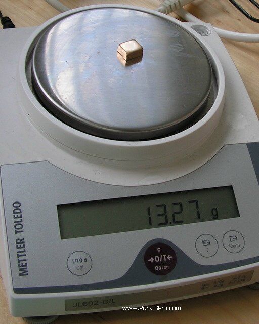 CNC machining is a very loss-heavy way of working in any case. Here we see a horn blank on the scale, 13.27 grams.