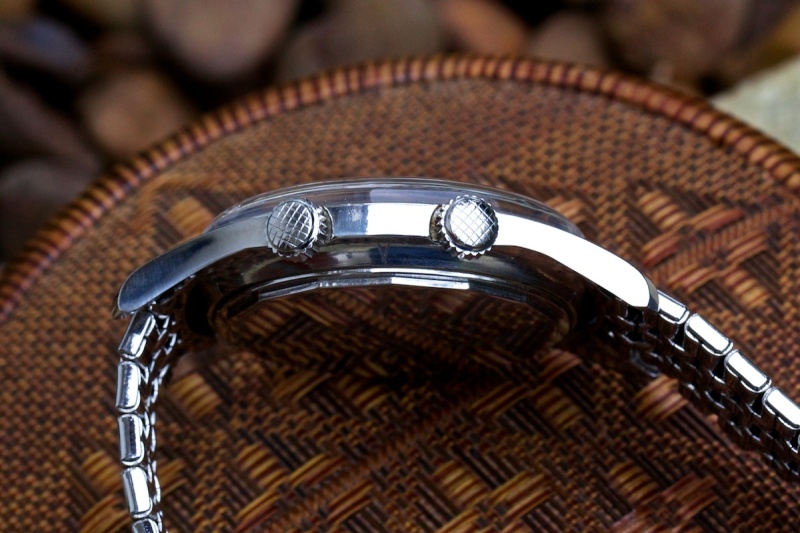 Those cases where used by several companies including Universal Genève Polerouter Sub (our watch), the Longines Compressor, the Vulcain Diving Alarm, the IWC Aquatimer and the Jaeger-LeCoultre Polaris. Other companies also used those cases like the Fortis Marine Master, the Hamilton 600 and other names like Olma, Droz, Baylor and Technos