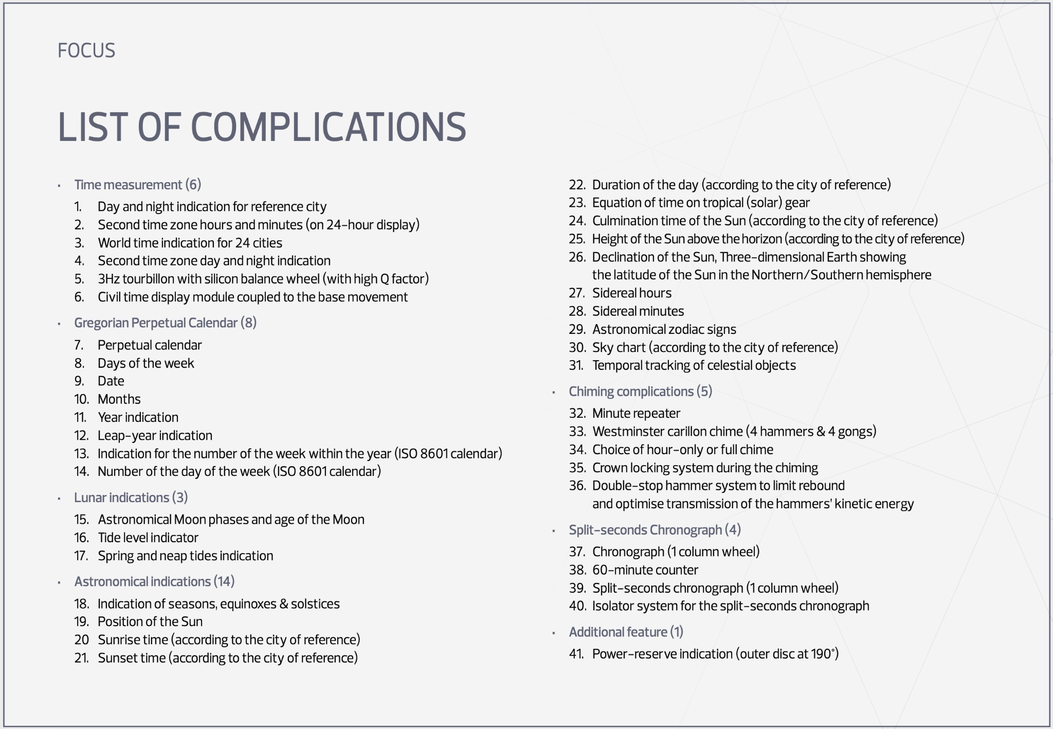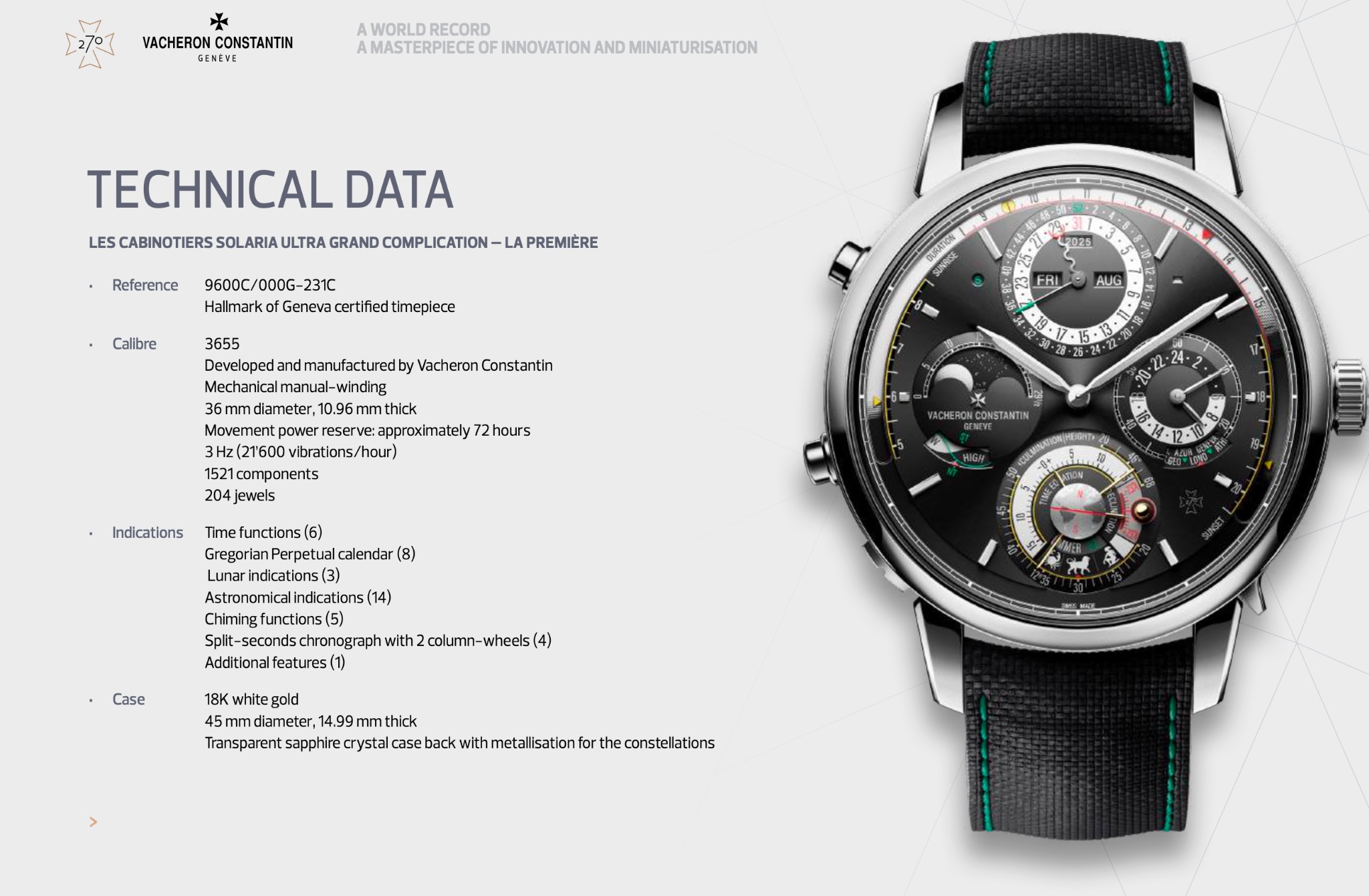 Emmanuel, known as quattro on WatchProSite, presents an in-depth pictorial and technical overview of the Vacheron Constantin Les Cabinotiers Solaria Ultra Grande Complication. This article serves as an essential resource for understanding the Solaria's 41 complications, offering both a quick reference and links for deeper exploration. Emmanuel's meticulous presentation highlights the watch's record-breaking complexity and Vacheron Constantin's commitment to legibility amidst its horological marvels.