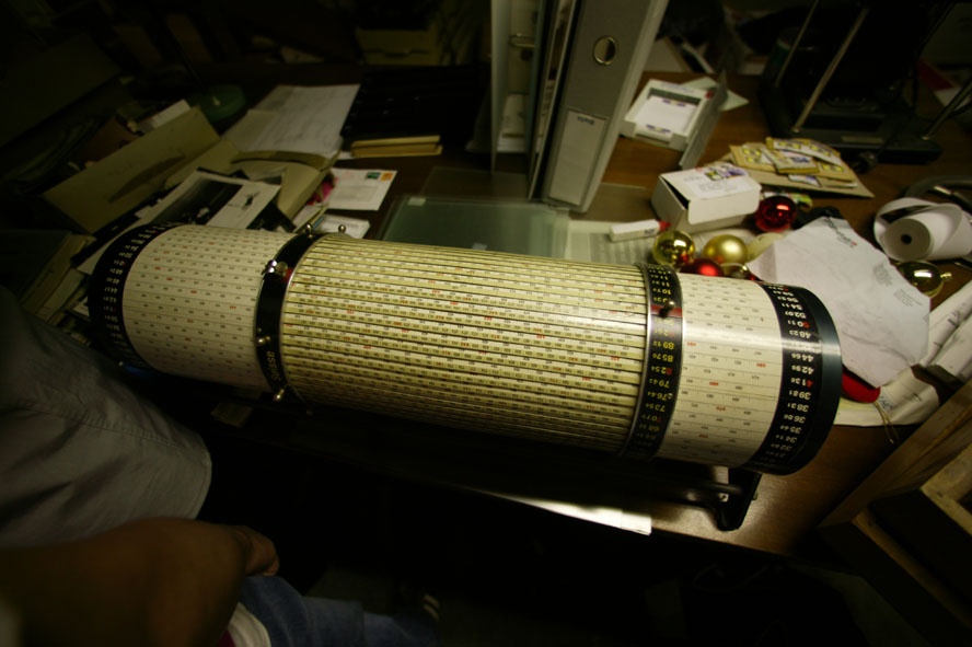 is a kind of calculation ruler that was in use prior to the rising of electronic pocket calculators. Vianney is fascinated by these tools that used to be necessary for sciences and engineering. He owns several models. He says the Opus 3 was inspired by one of this mechanical calculator : the Gurta machine Cheers