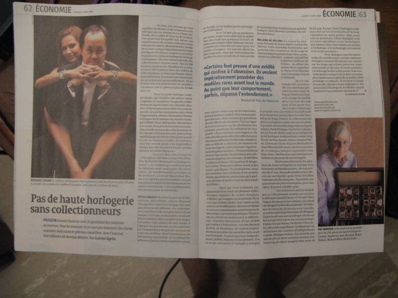 There are also fortunate lovers of beautiful objects, as Pat Warren. This venerable American, who participates in competitive dressage horses in the western United States, began his collection - now estimated at several million dollars - in the early 1990's, looking for a showcase jeweler during a trip to Aspen (Colorado). "I do not know anything," she said. I bought a first watch that day. And then 250 other then! I change model two or three times a day. I wear all. The most expensive I have is a Tourbillon Orbital Jean Dunand and Excalibur Double Tourbillon Roger Dubuis. I collect coins watch as works of art. I have models of famous brands like Patek Philippe, Vacheron Constantin, or Frank Muller, but I prefer the small independent watchmakers as Jorg Hysek, DeWitt, Speake-Marin, Vianney Halter, Christiaan van der Klaauw (Netherlands), and Alain Silberstein (France) Even if some of these brands are poorly represented in the United States. "Pat Warren has met personally with many of these watchmakers.